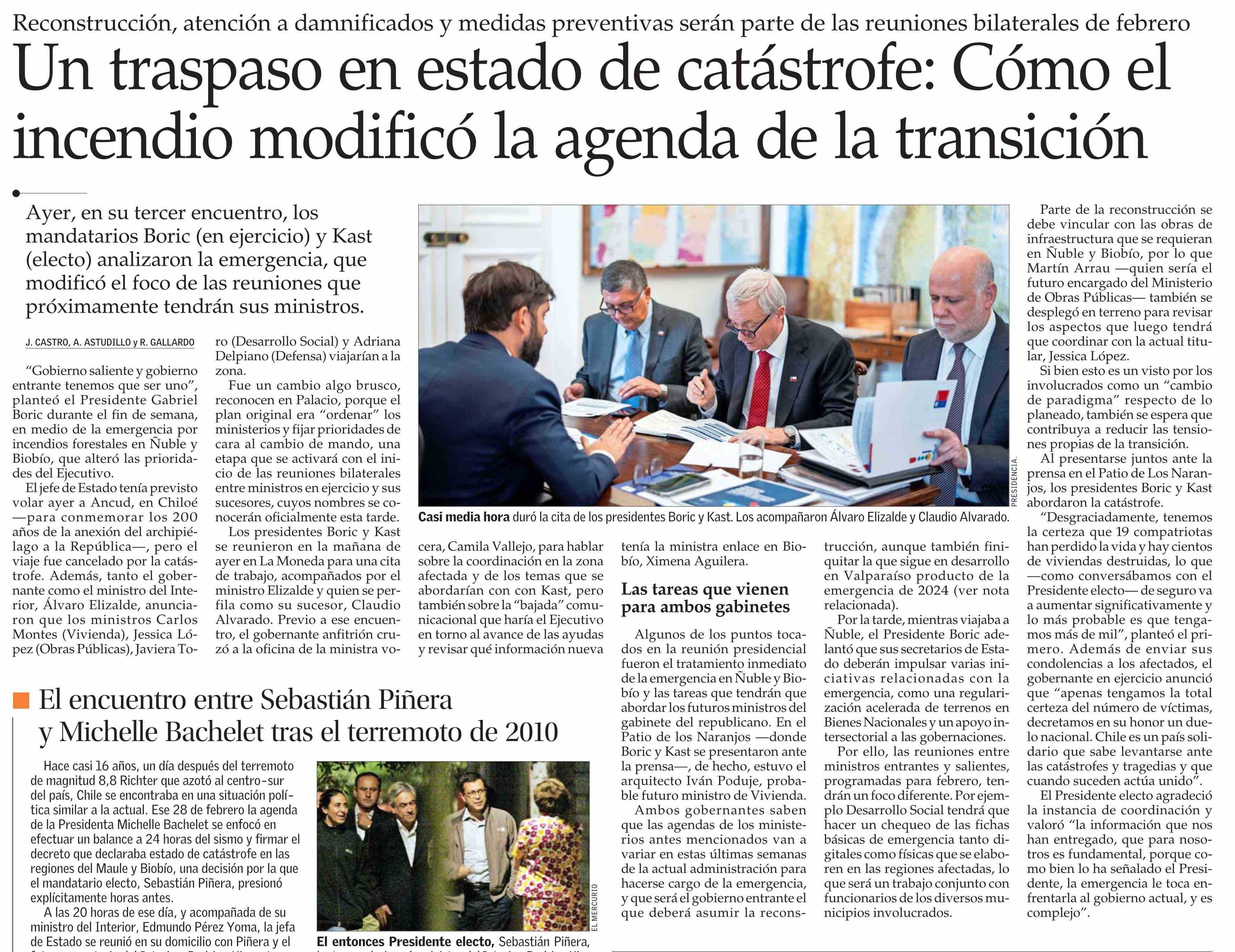 Título: Un traspaso en estado de catástrofe: Cómo el incendio modificó la agenda de la transición