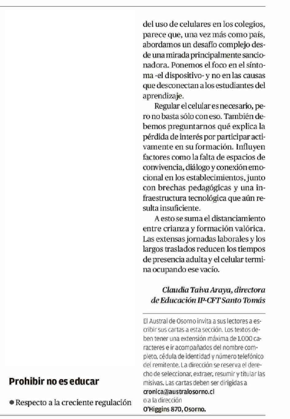 CARTAS: Prohibir no es educar