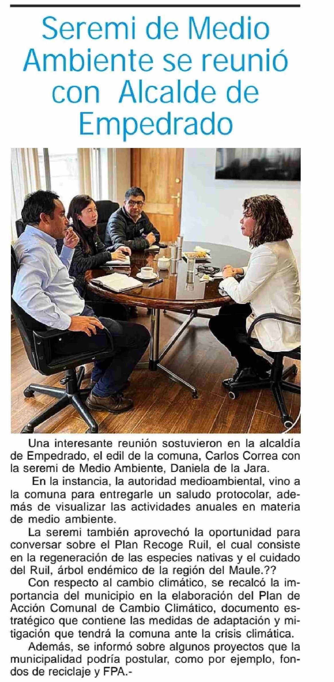 Seremi de Medio Ambiente se reunió con Alcalde de Empedrado 25-05-2025 Maule Hoy |