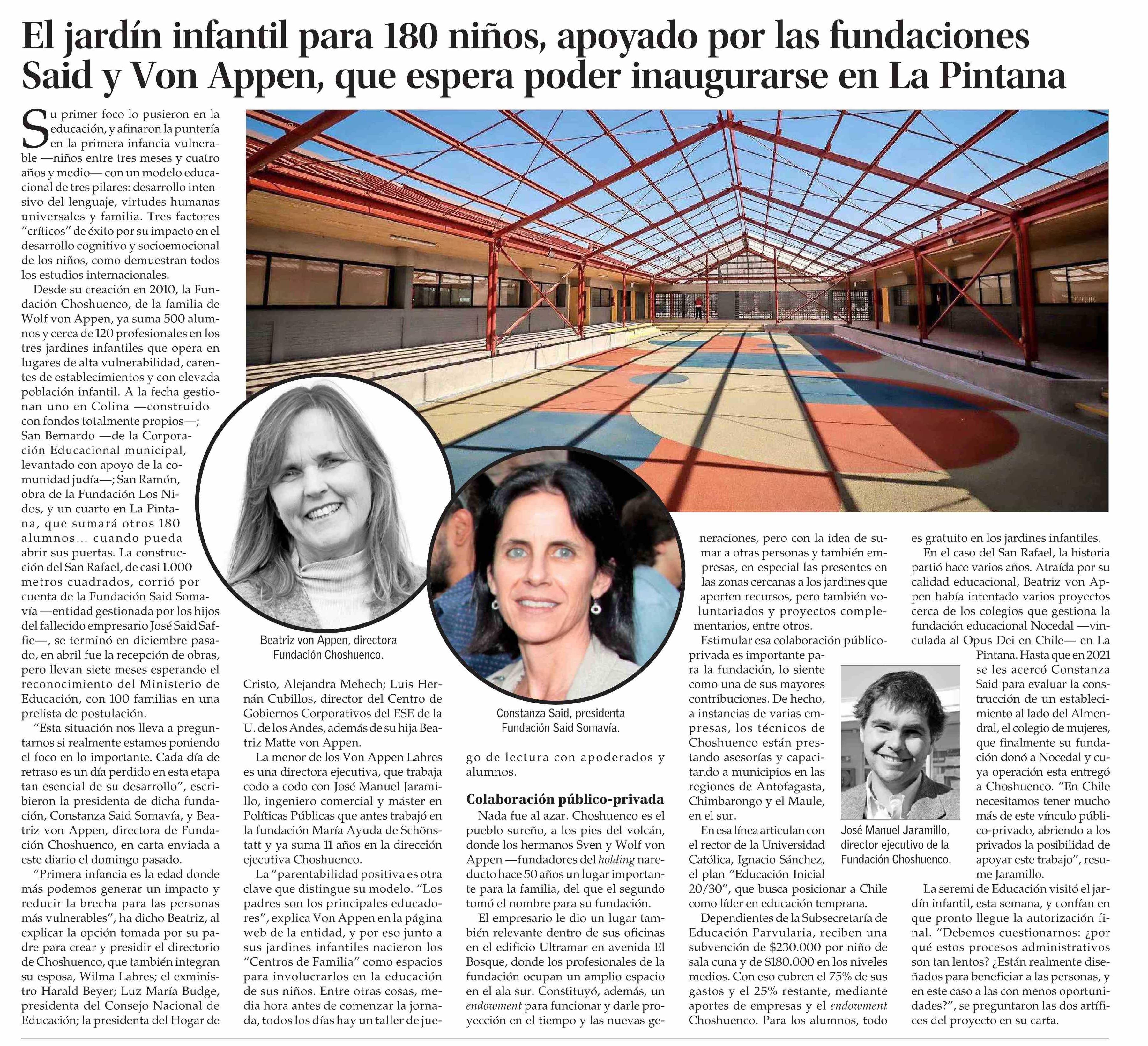 El jardín infantil para 180 niños, apoyado por las fundaciones Said y Von Appen, que espera poder inaugurarse en La Pintana 14-07-2024 El Mercurio |