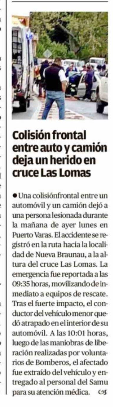 Colisión frontal entre auto y camión deja un herido en cruce Las Lomas 10-03-2026 El Llanquihue |