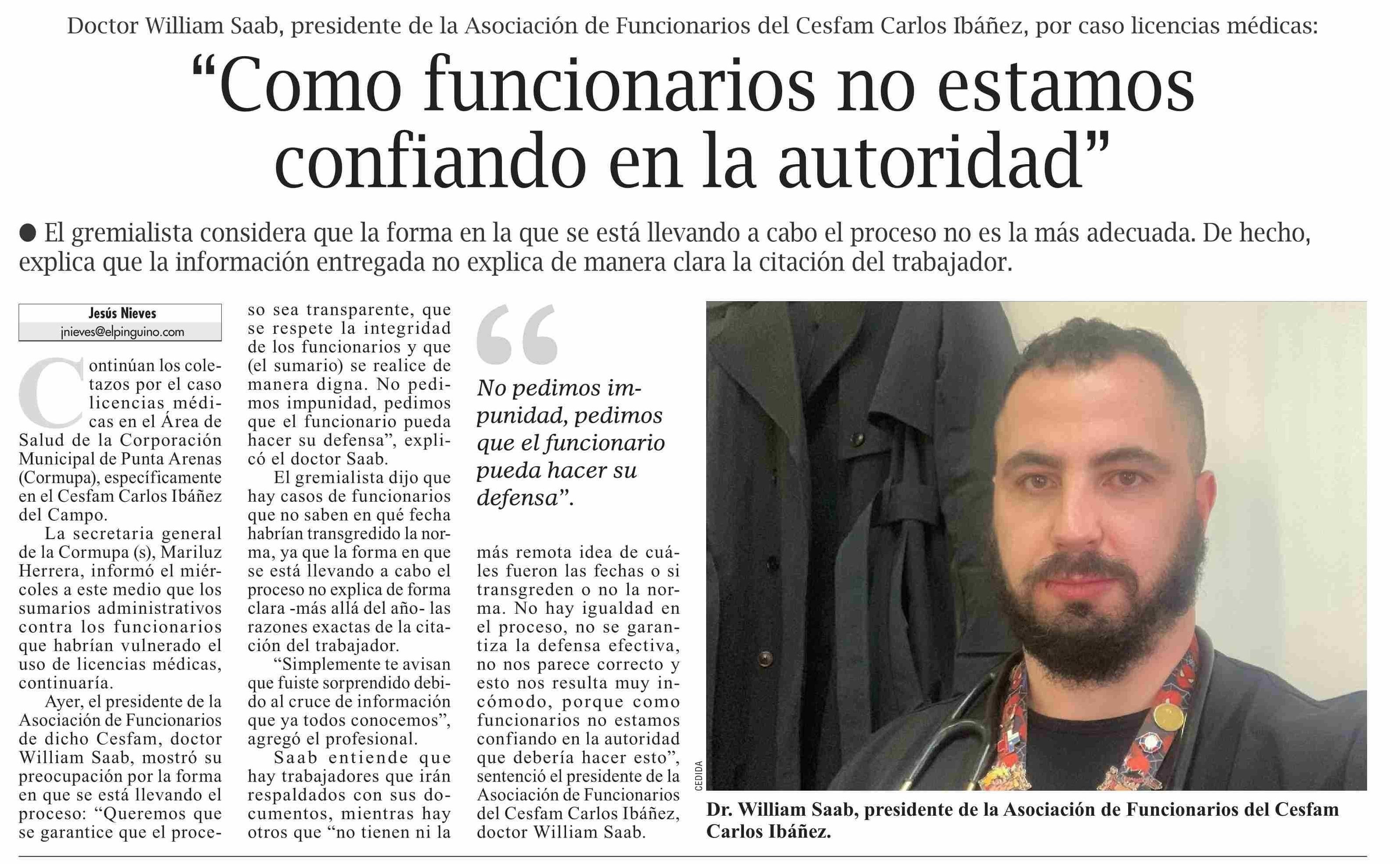 “Como funcionarios no estamos confiando en la autoridad” 06-06-2025 El Pingüino |