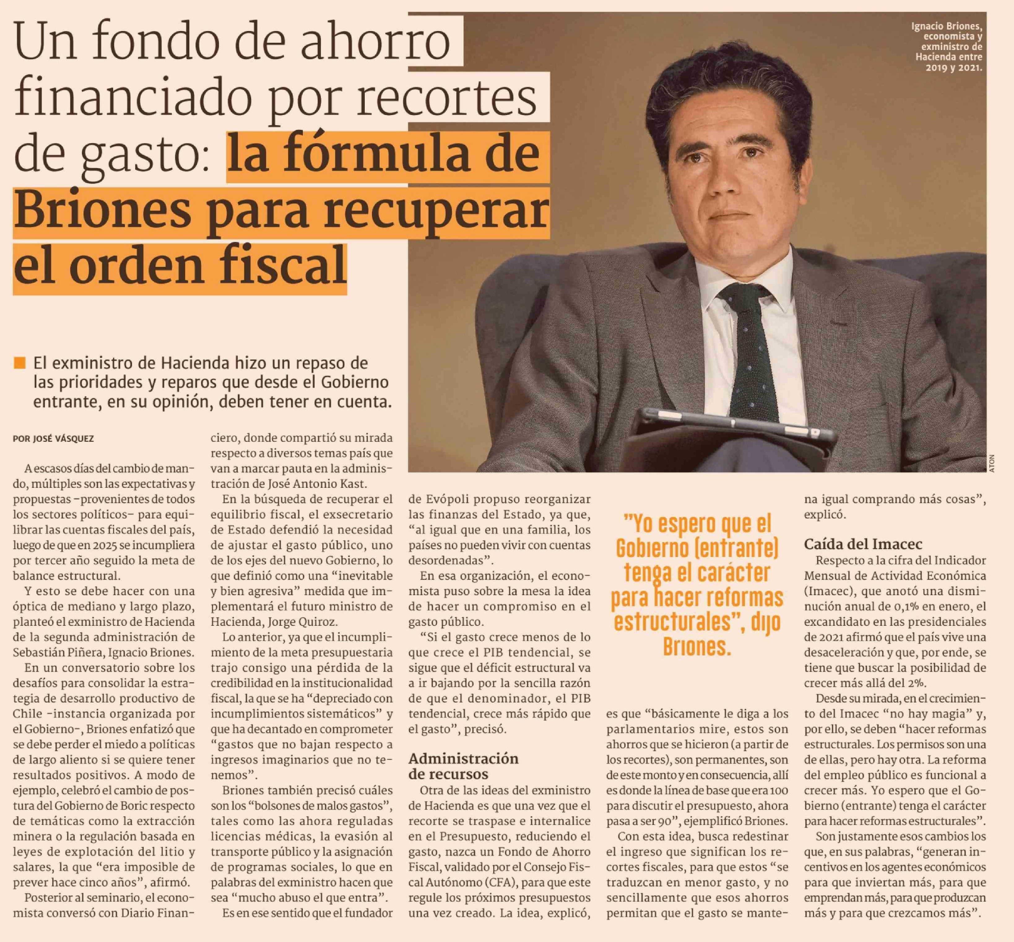 Un fondo de ahorro financiado por recortes de gasto: la fórmula de Briones para recuperar el orden fiscal 03-03-2026 Diario Financiero |
