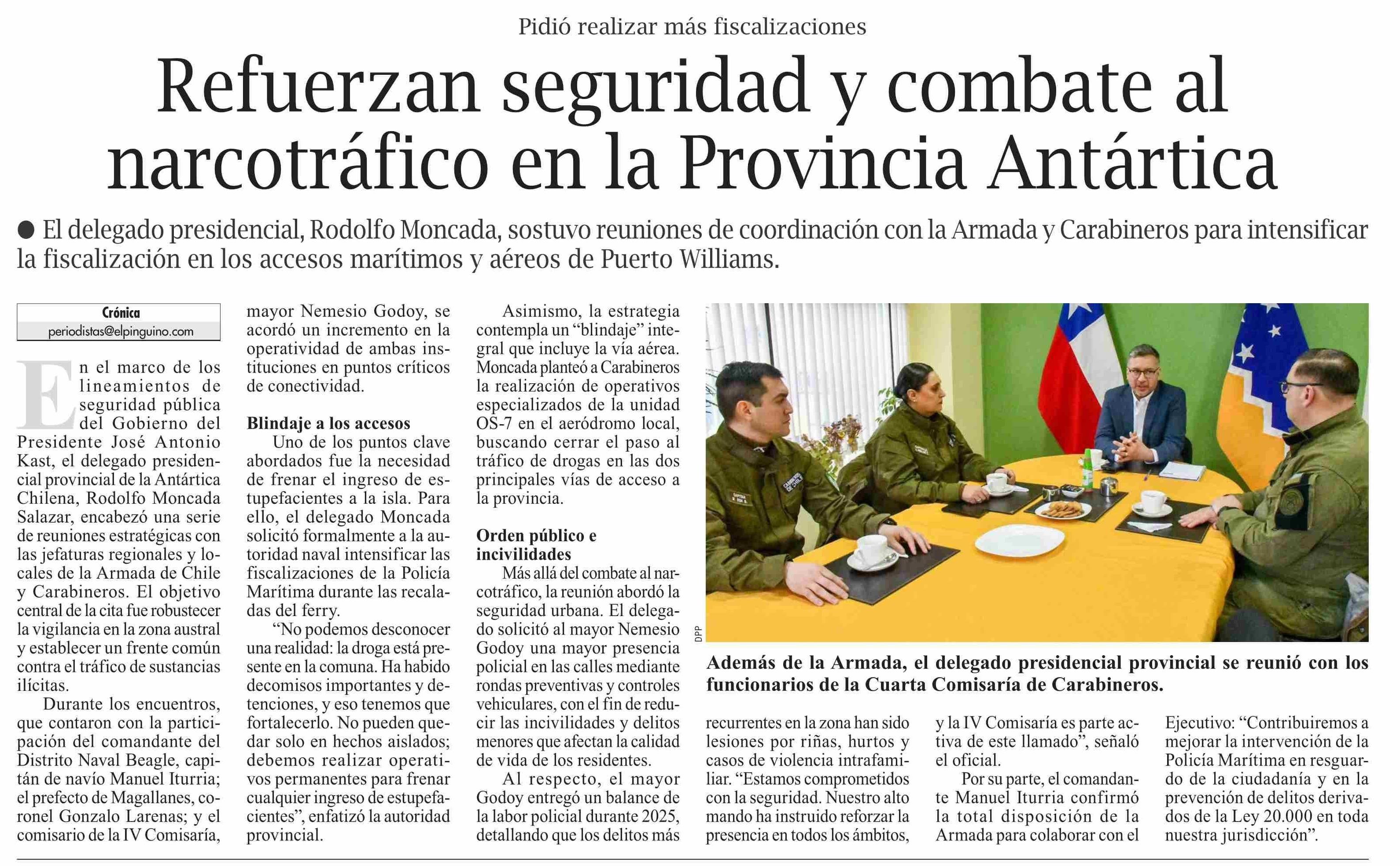 Refuerzan seguridad y combate al narcotráfico en la Provincia Antártica 26-03-2026 El Pingüino |