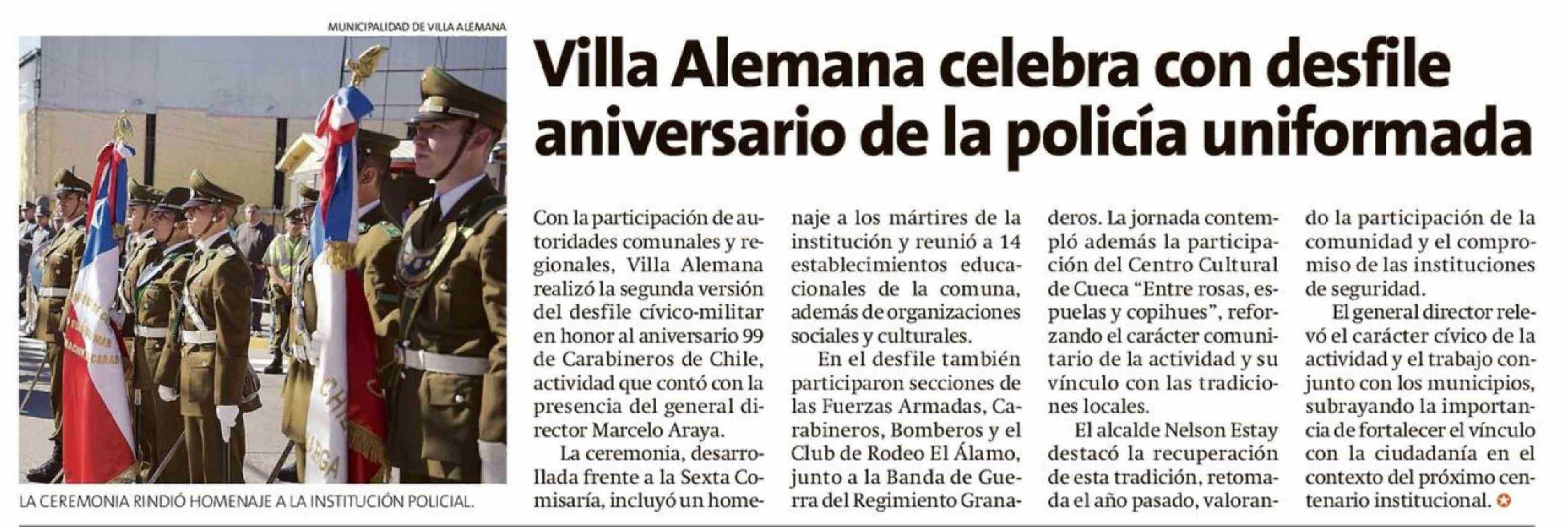 | Título: | Villa Alemana celebra con desfile aniversario de la policía uniformada |