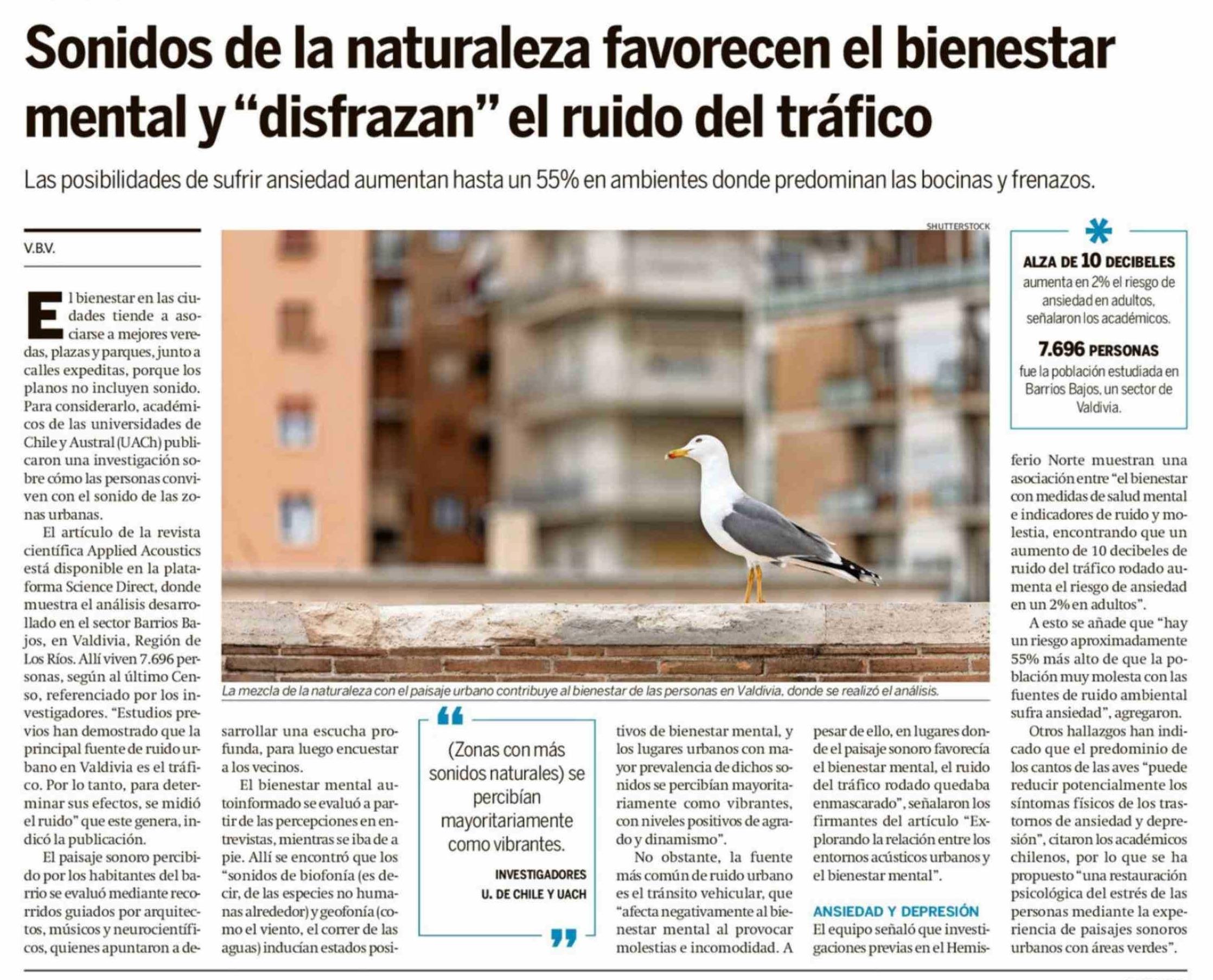 Título: Sonidos de la naturaleza favorecen el bienestar mental y "disfrazan" el ruido del tráfico