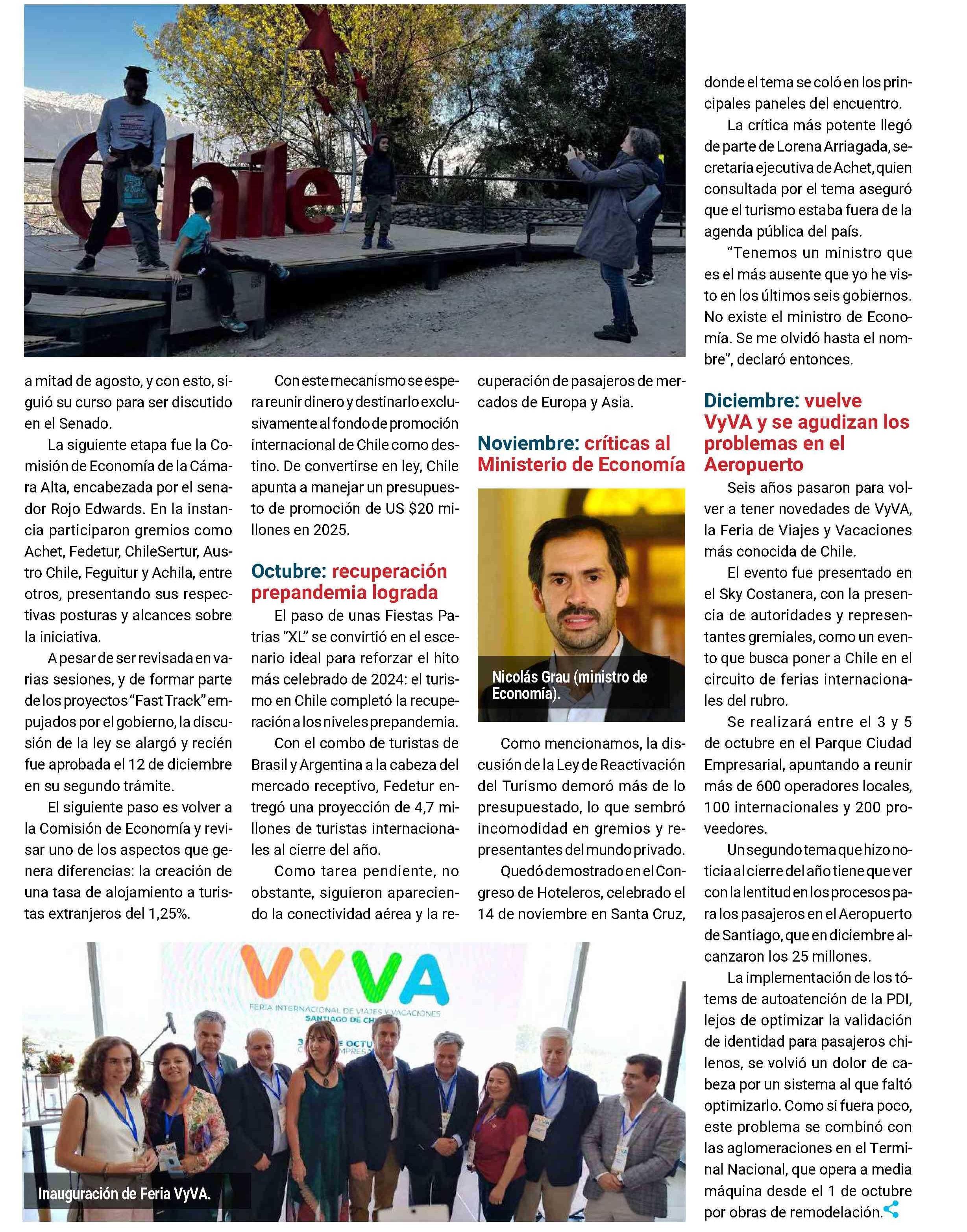 Lo que dejó 2024, el año definitivo de la recuperación del turismo en Chile 06-01-2025 Revista La Agencia de Viajes |