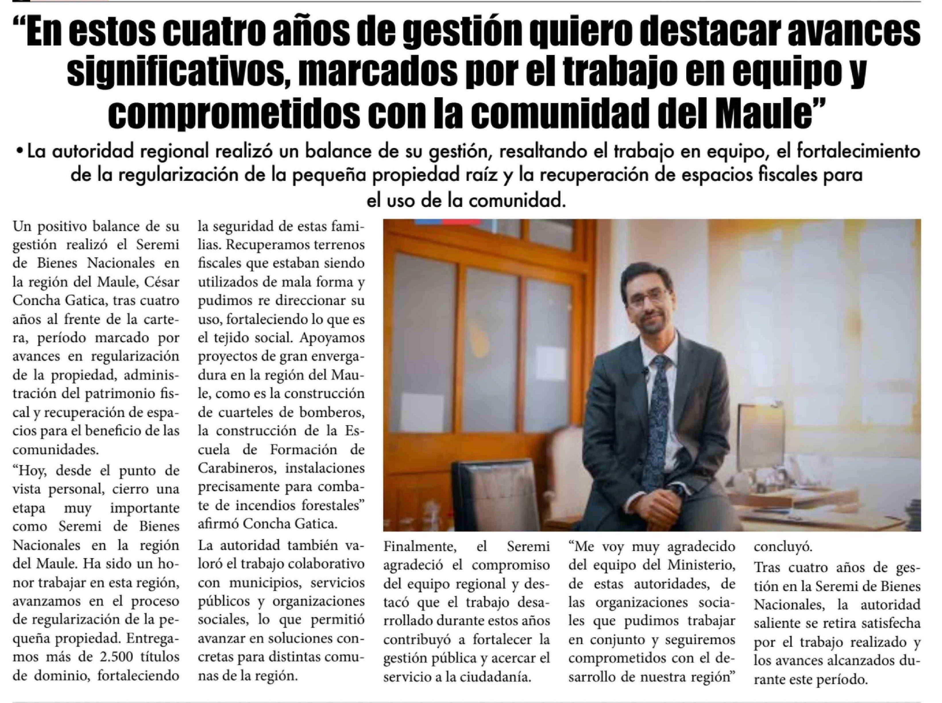 Título: "En estos cuatro años de gestión quiero destacar avances significativos, marcados por el trabajo en equipo y comprometidos con la comunidad del Maule"