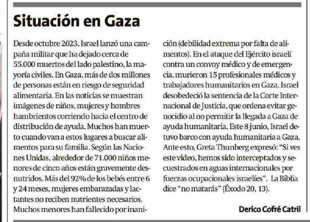 Cartas: Situación en Gaza 12-06-2025 La Estrella de Chiloé |