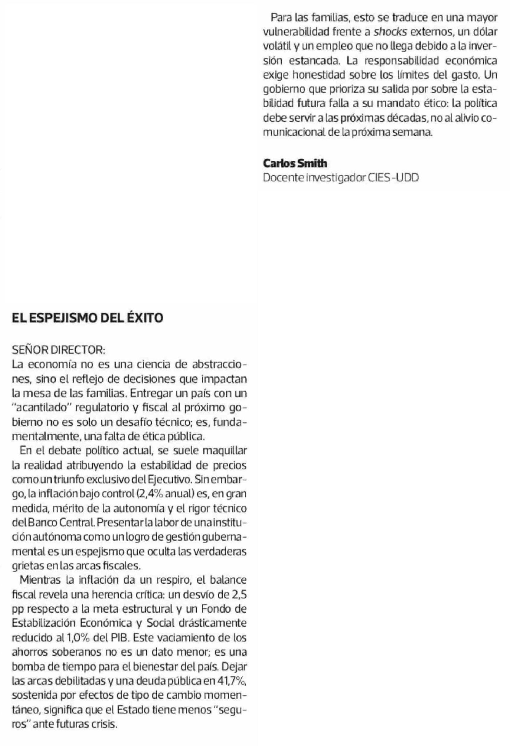Cartas: EL ESPEJISMO DEL ÉXITO 11-03-2026 La Tercera |