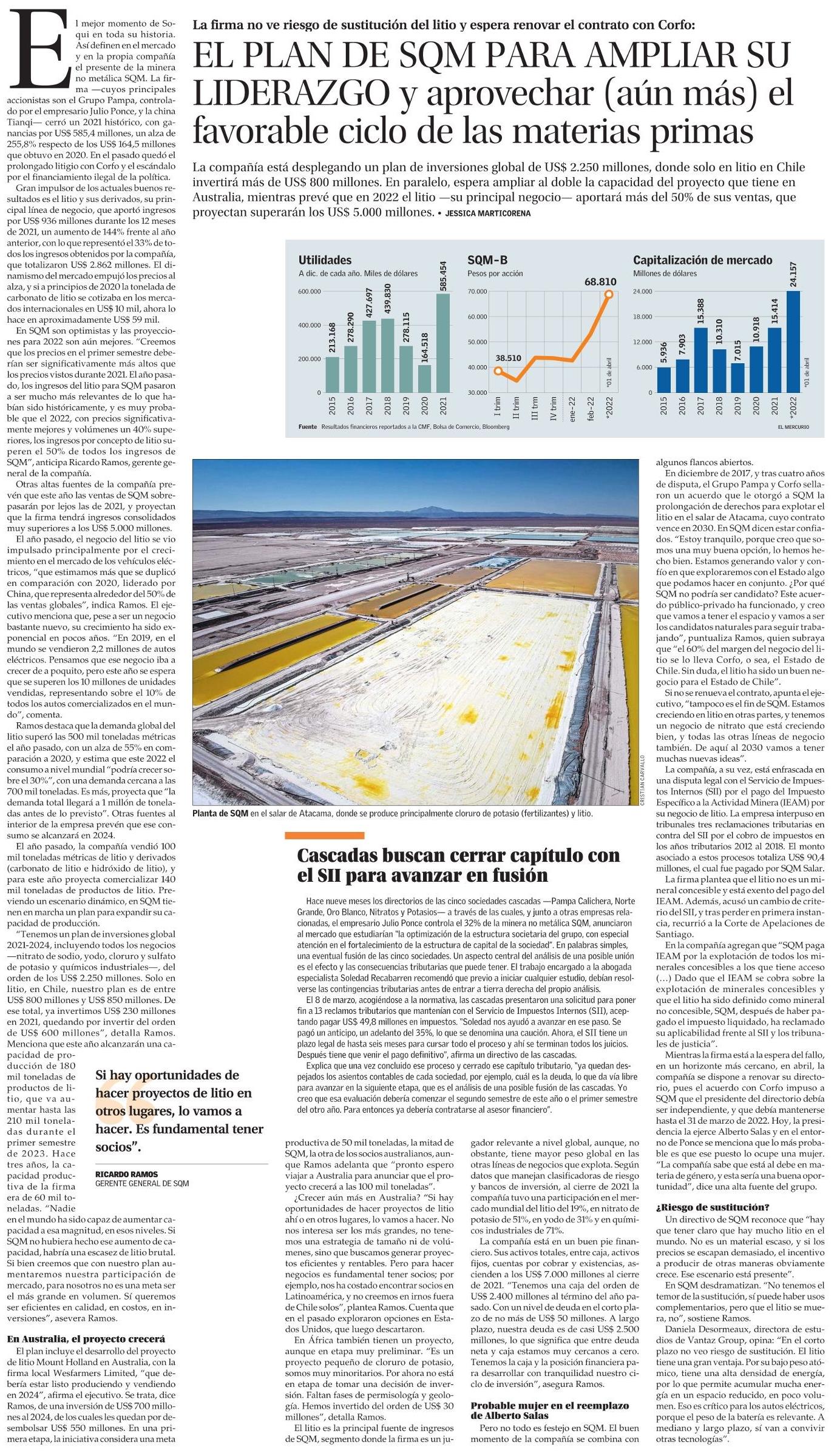 EL PLAN DE SOM PARA AMPLIAR SU LIDERAZGO y aprovechar (aún más) el favorable ciclo de las materias primas 03-04-2022 El Mercurio |