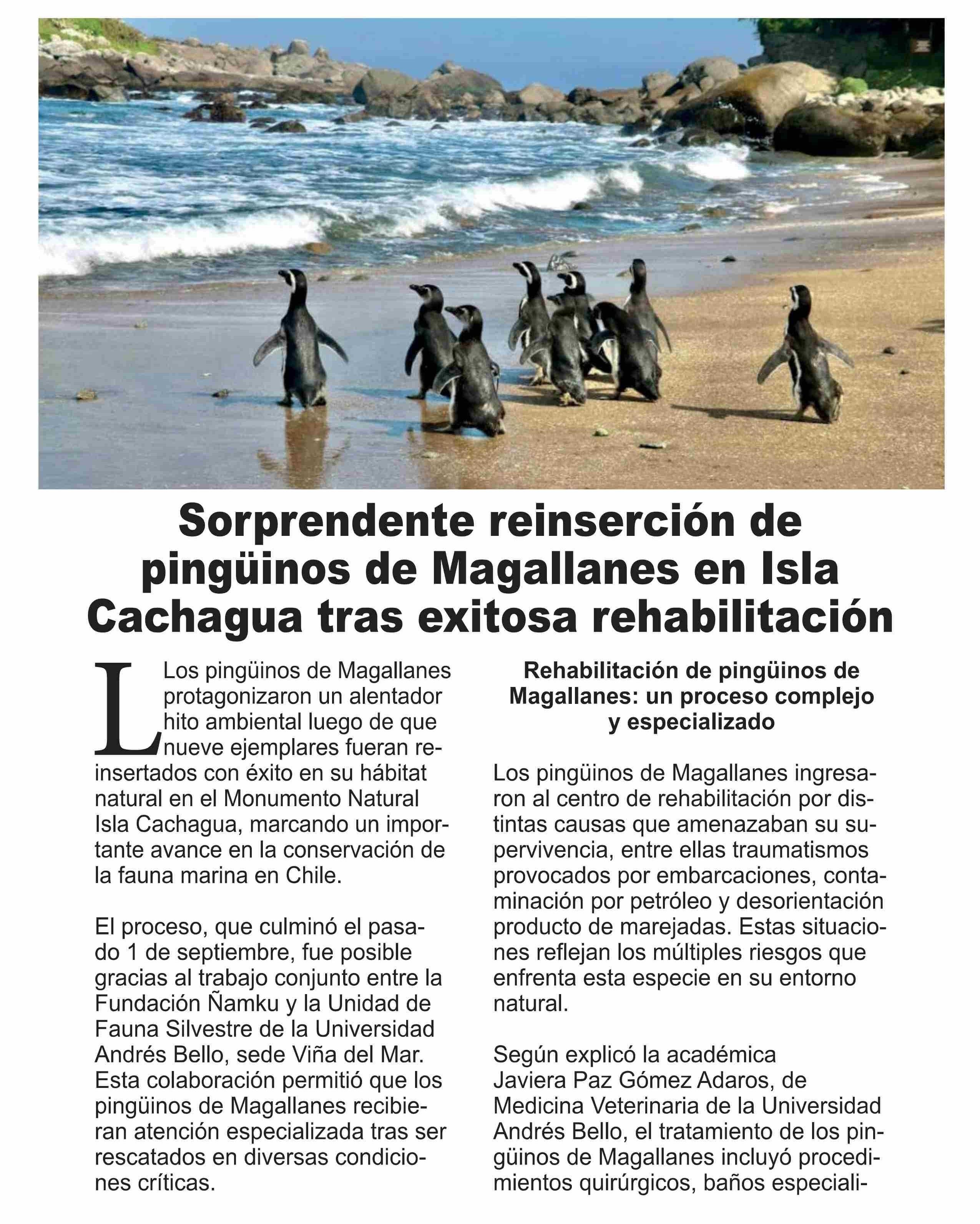 | Título: | Sorprendente reinserción de pingüinos de Magallanes en Isla Cachagua tras exitosa rehabilitación |