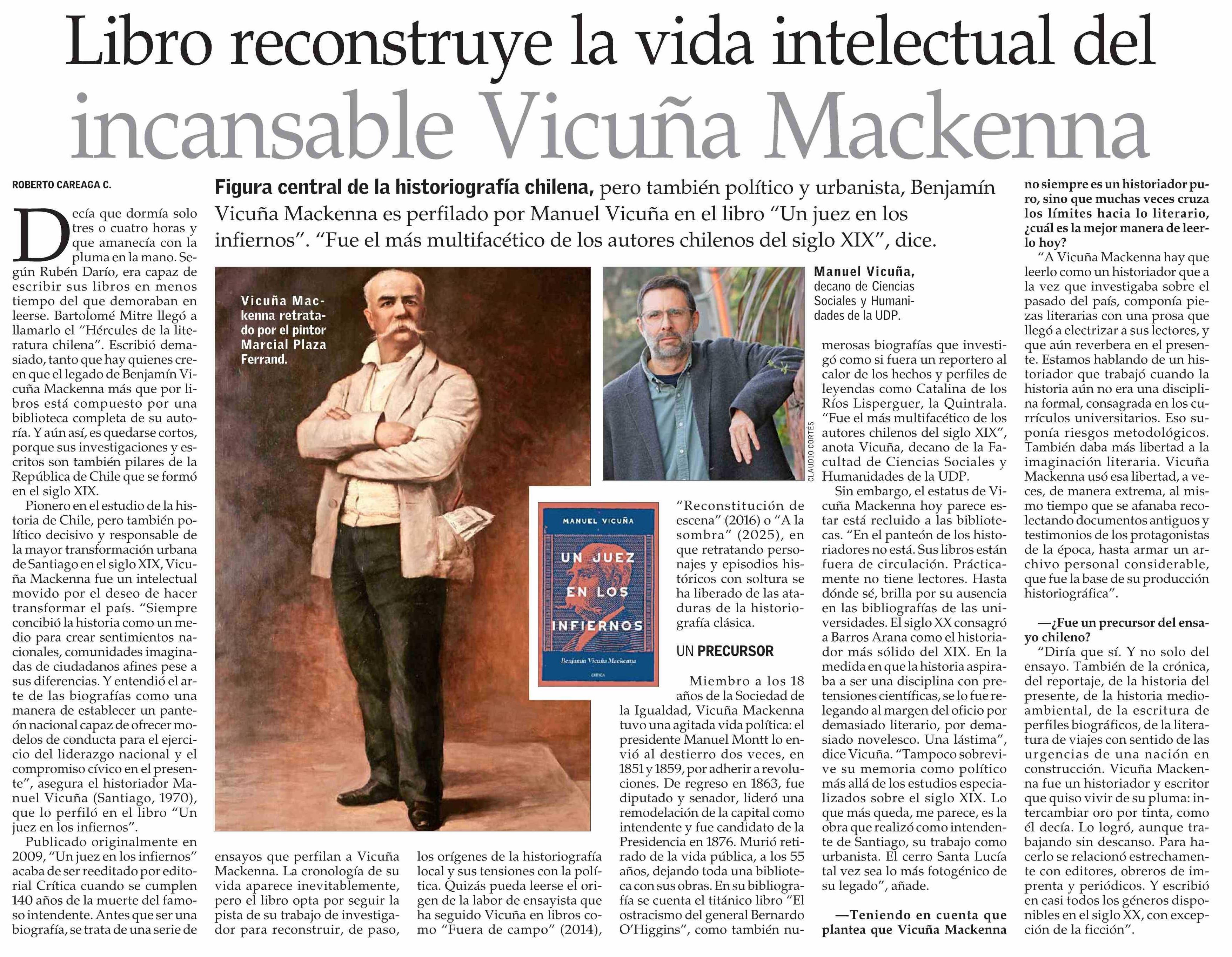 Título: Libro reconstruye la vida intelectual del incansable Vicuña Mackenna