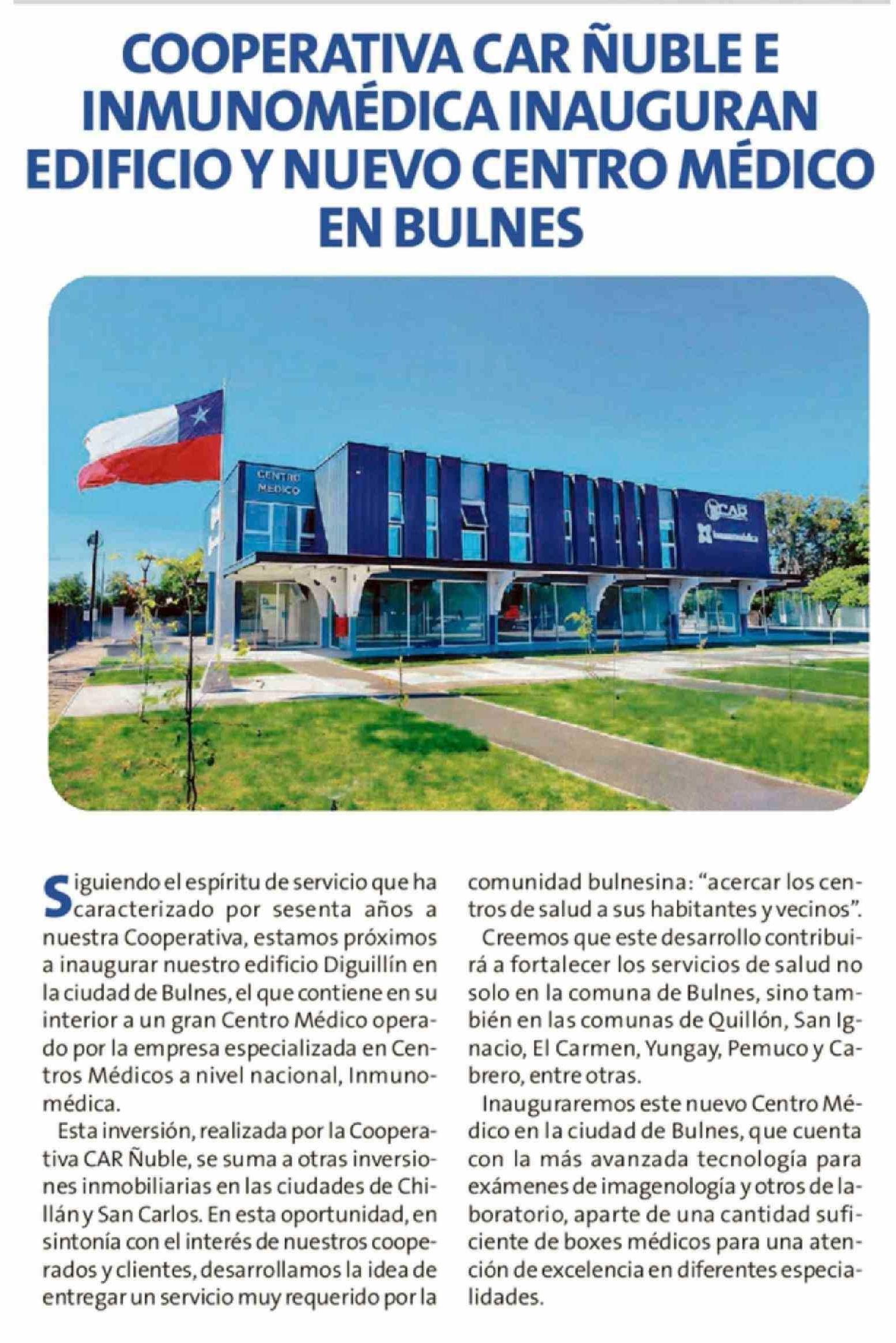 COOPERATIVA CAR ÑUBLE E INMUNOMÉDICA INAUGURAN EDIFICIO Y NUEVO CENTRO MÉDICO EN BULNES 12-04-2026 Crónica de Chillán |