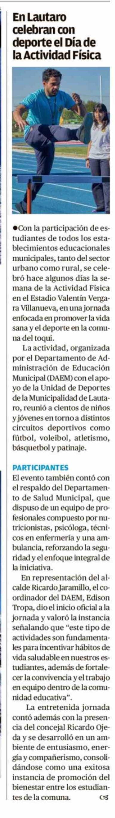 En Lautaro celebran con deporte el Día de la Actividad Física 13-04-2026 El Austral de la Araucanía |