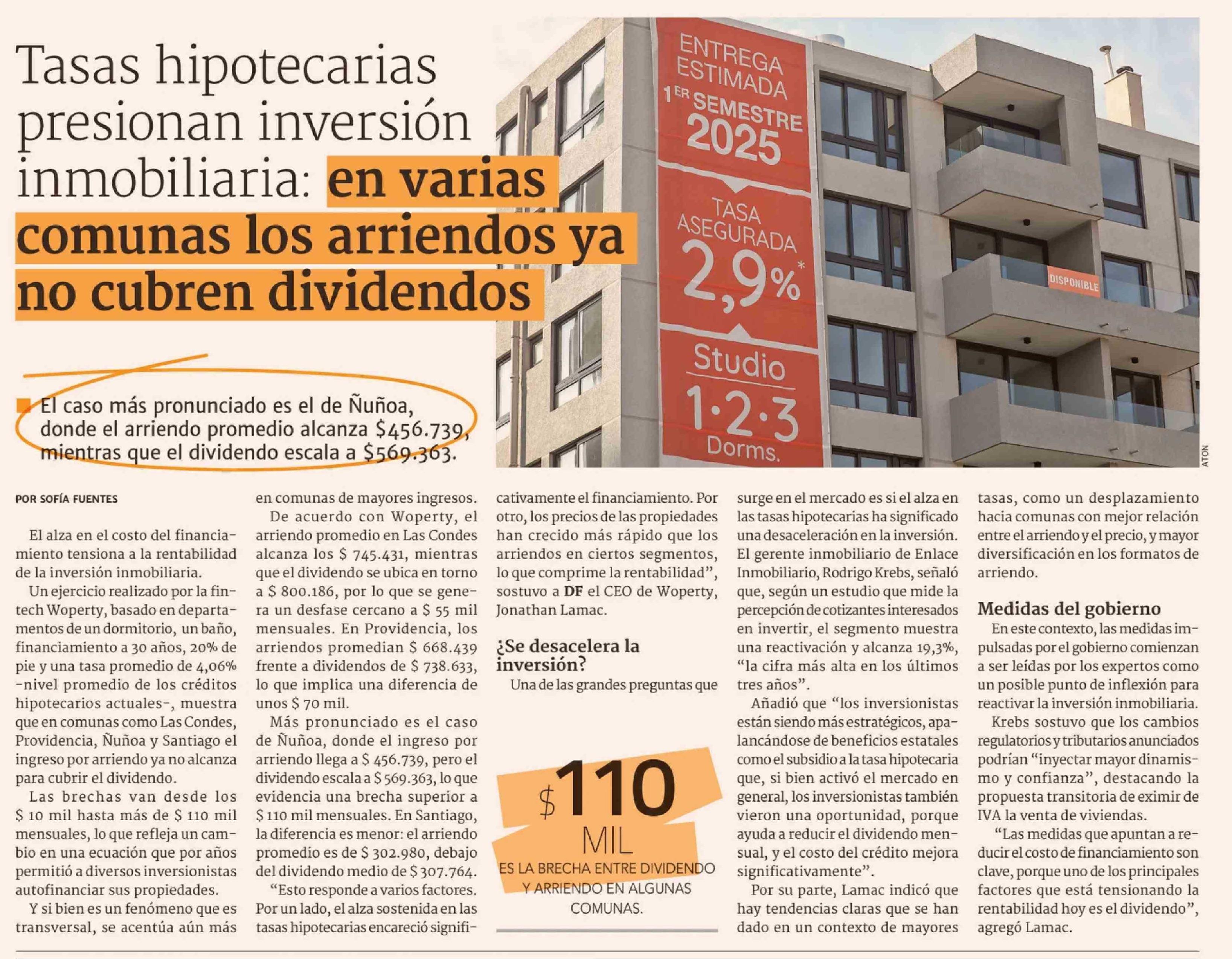 | Título: | Tasas hipotecarias presionan inversión inmobiliaria: en varias comunas los arriendos ya no cubren dividendos |