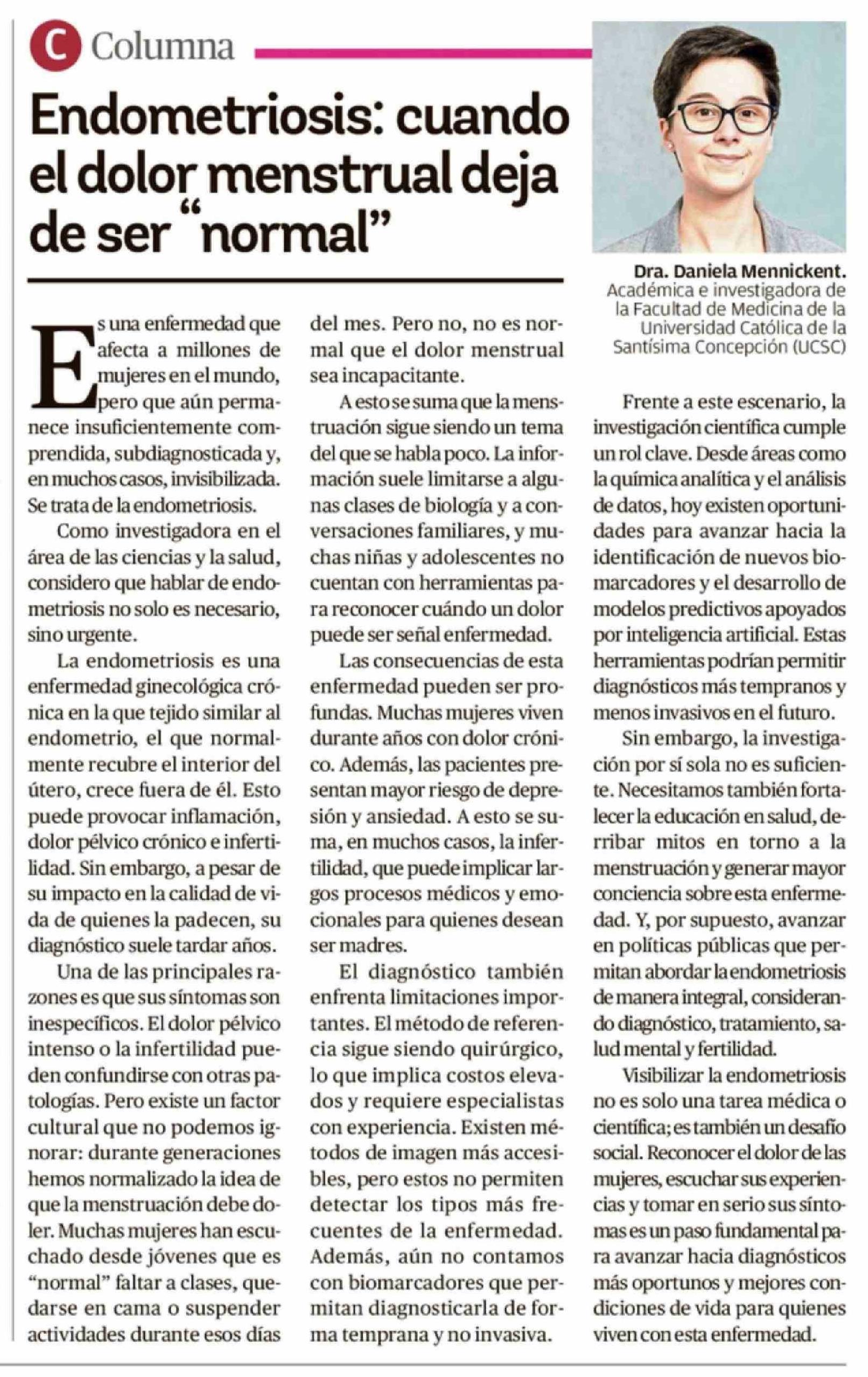 Título: Columnas de Opinión: Endometriosis: cuando el dolor menstrual deja de ser "normal"