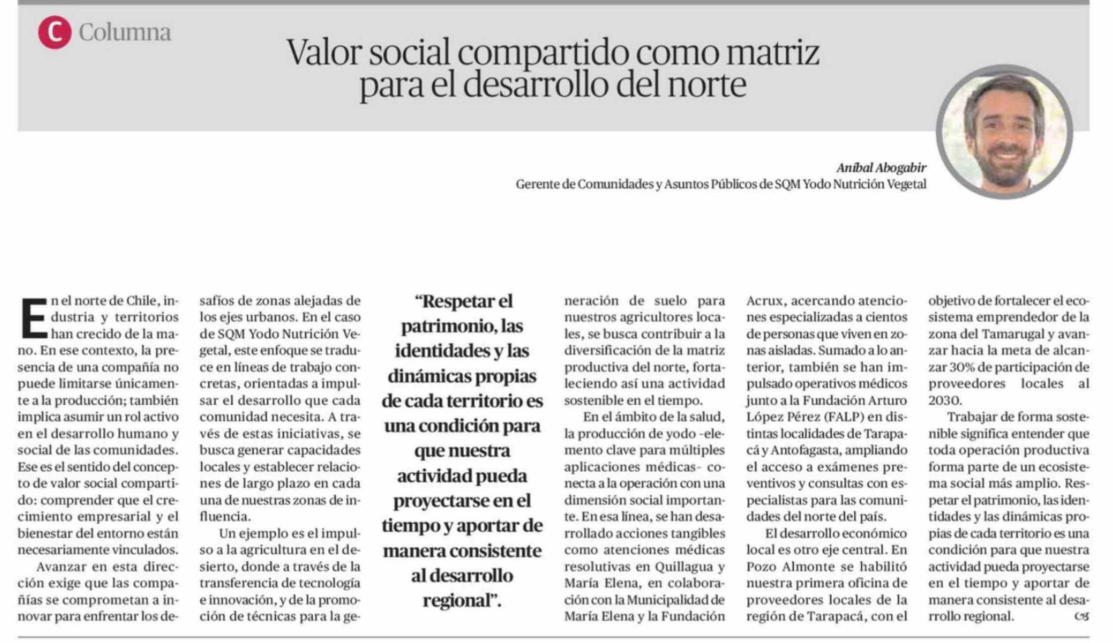 Columnas de Opinión: Valor social compartido como matriz para el desarrollo del norte