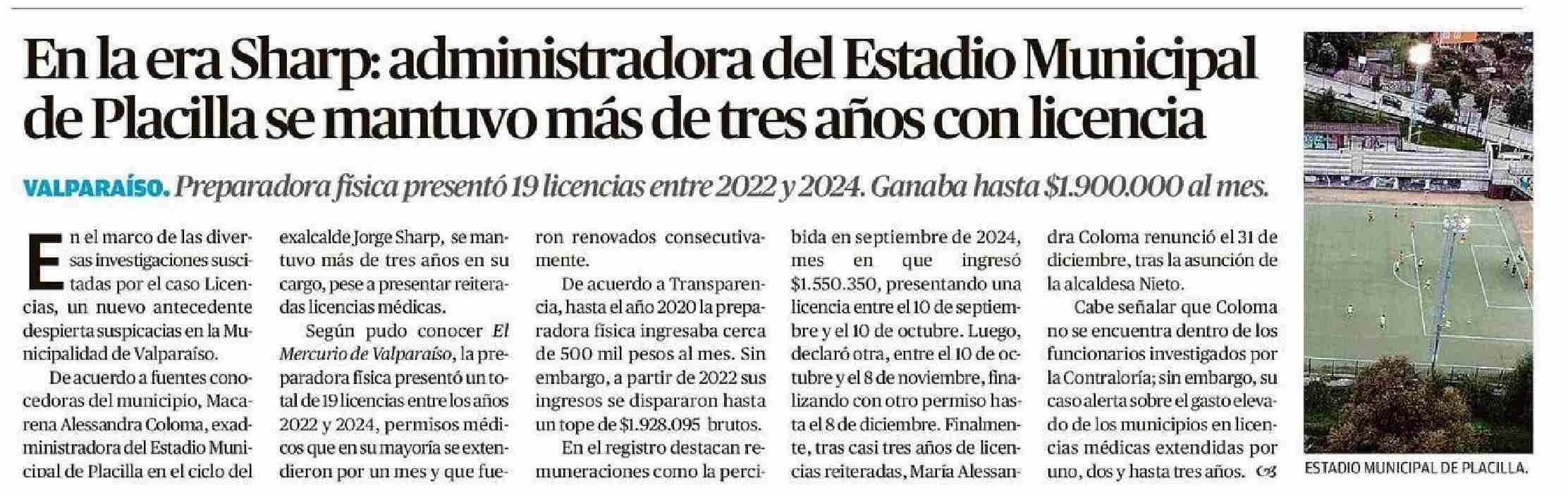 En la era Sharp: administradora del Estadio Municipal de Placilla se mantuvo más de tres años con licencia 06-06-2025 El Mercurio de Valparaíso |