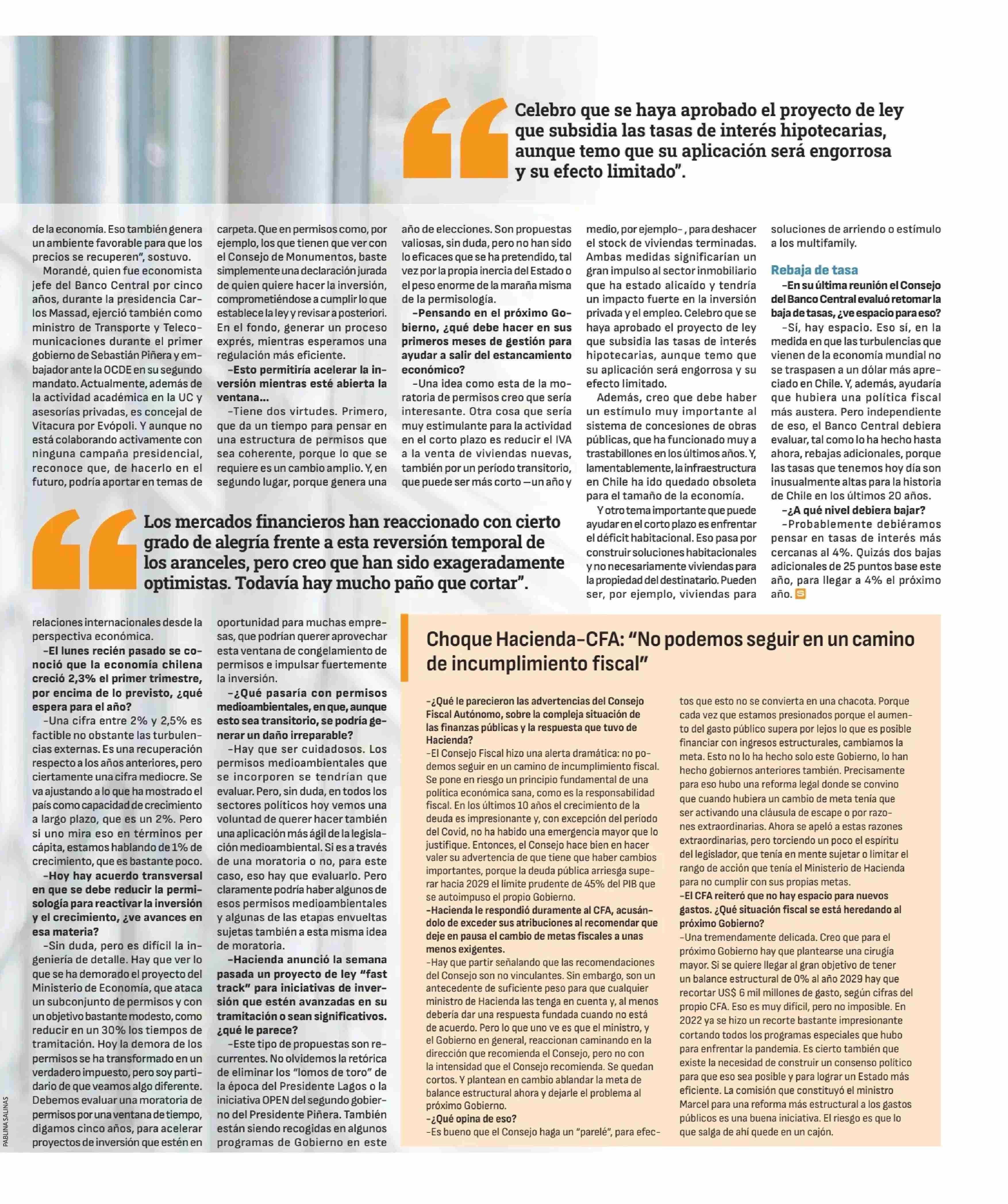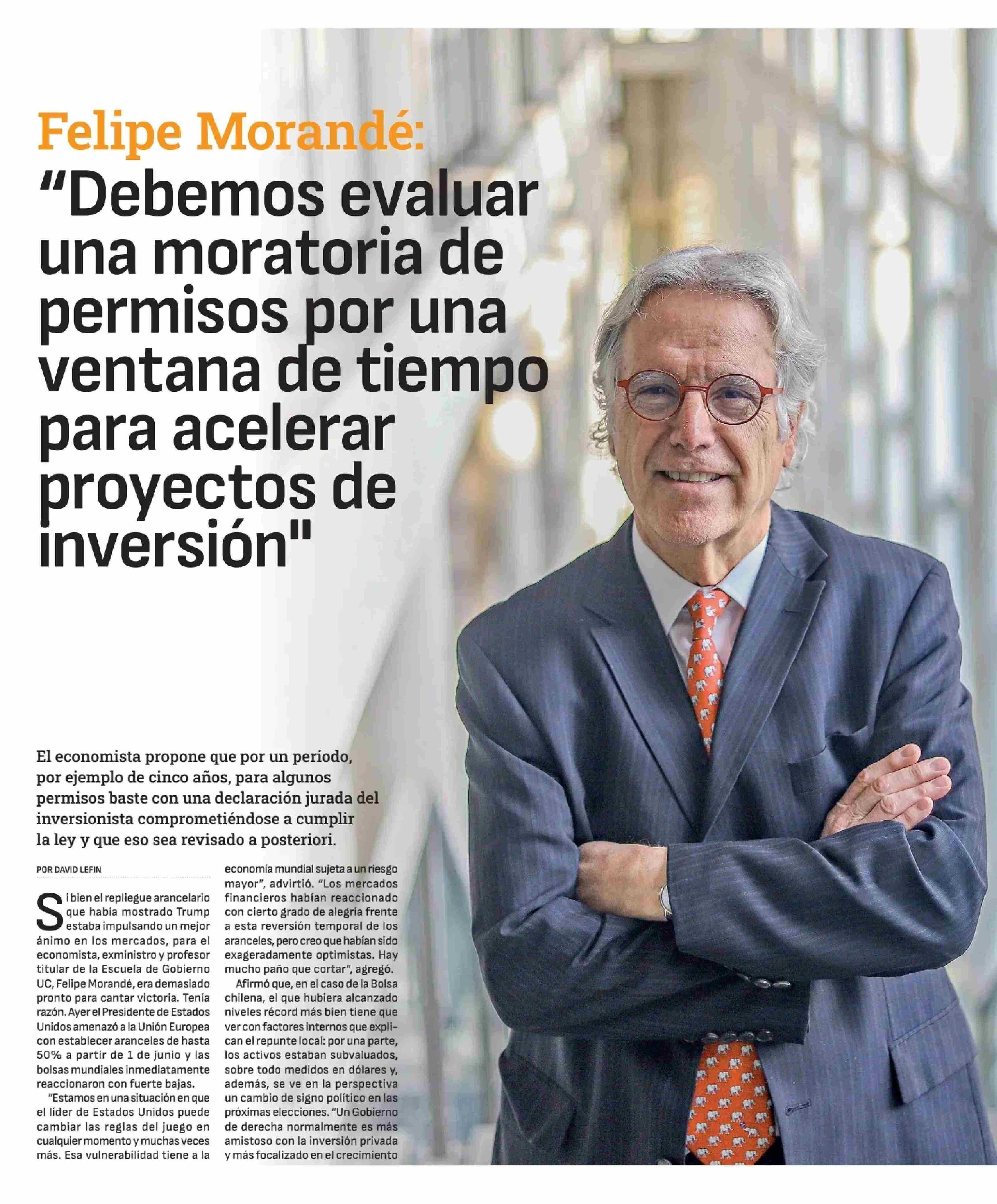 Felipe Morande: “Debemos evaluar una moratoria de permisos por una ventana de tiempo para acelerar proyectos de Inversión” 24-05-2025 Diario Financiero |