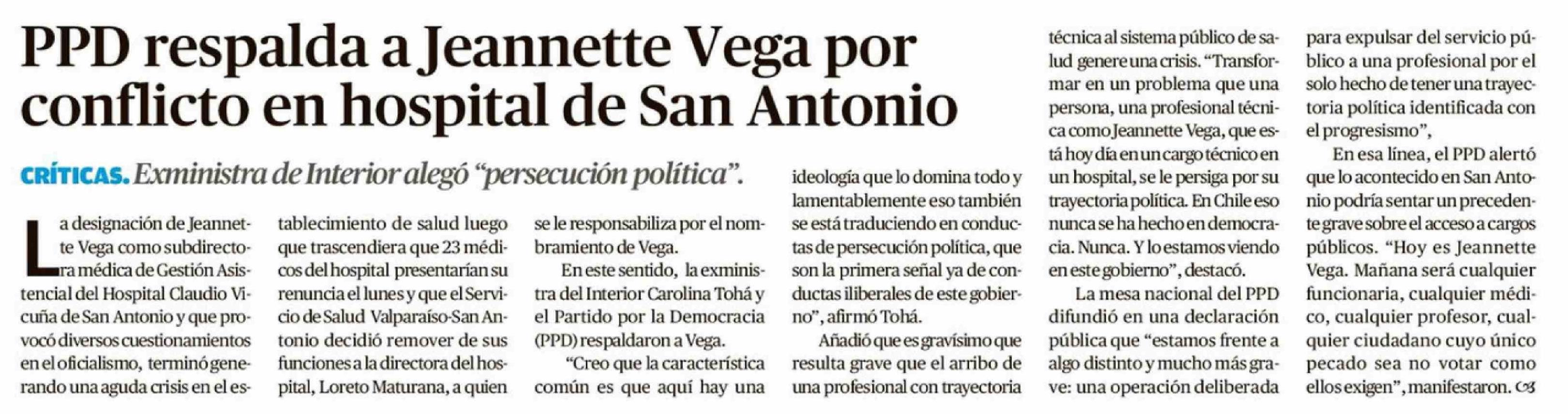 Título: PPD respalda a Jeannette Vega por conflicto en hospital de San Antonio