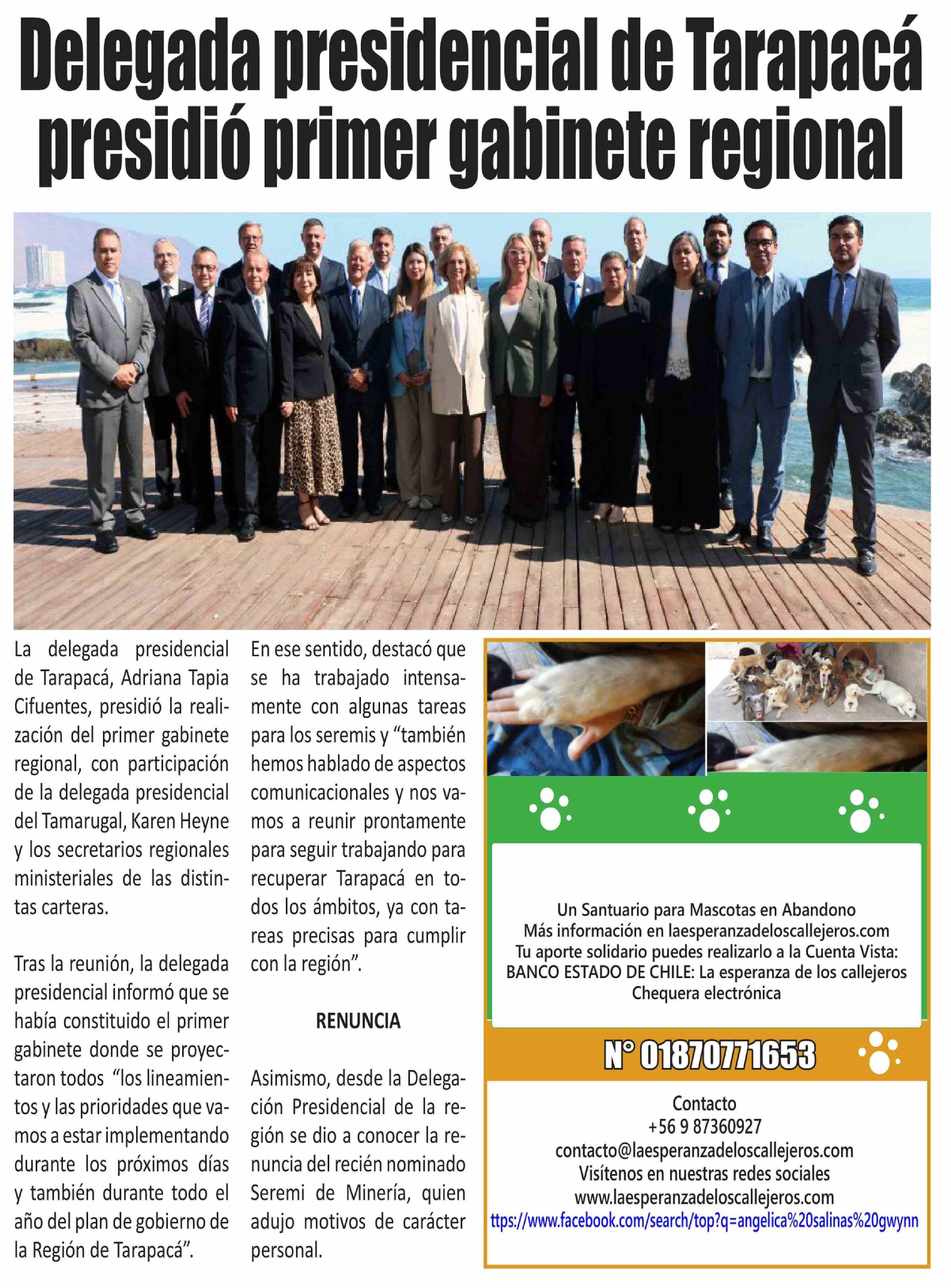 Título: Delegada presidencial de Tarapacá presidió primer gabinete regional