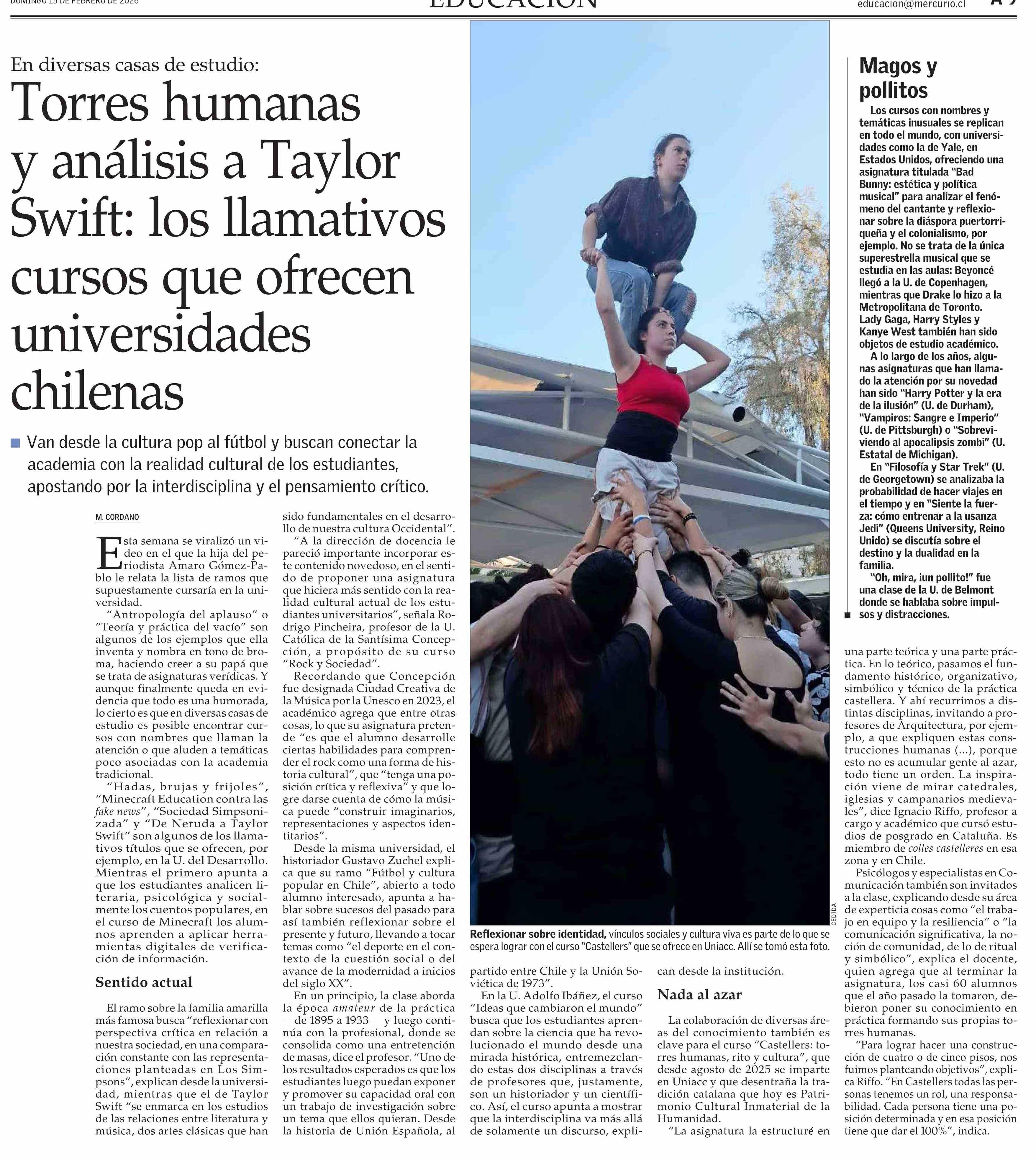 Torres humanas y análisis a Taylor Swift: los llamativos cursos que ofrecen universidades chilenas 15-02-2026 El Mercurio |