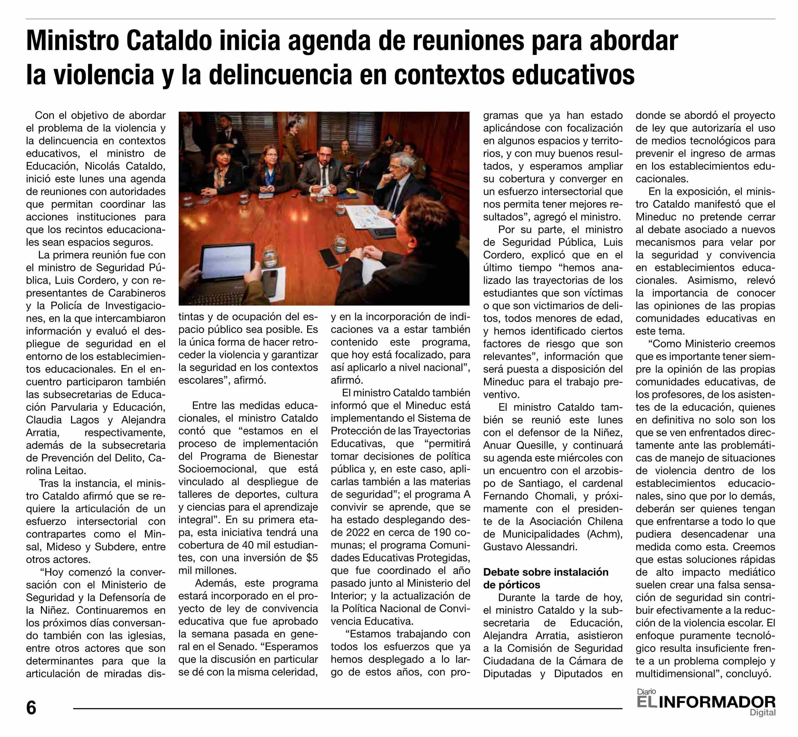 Ministro Cataldo inicia agenda de reuniones para abordar la violencia y la delincuencia en contextos educativos 11-06-2025 El Informador |