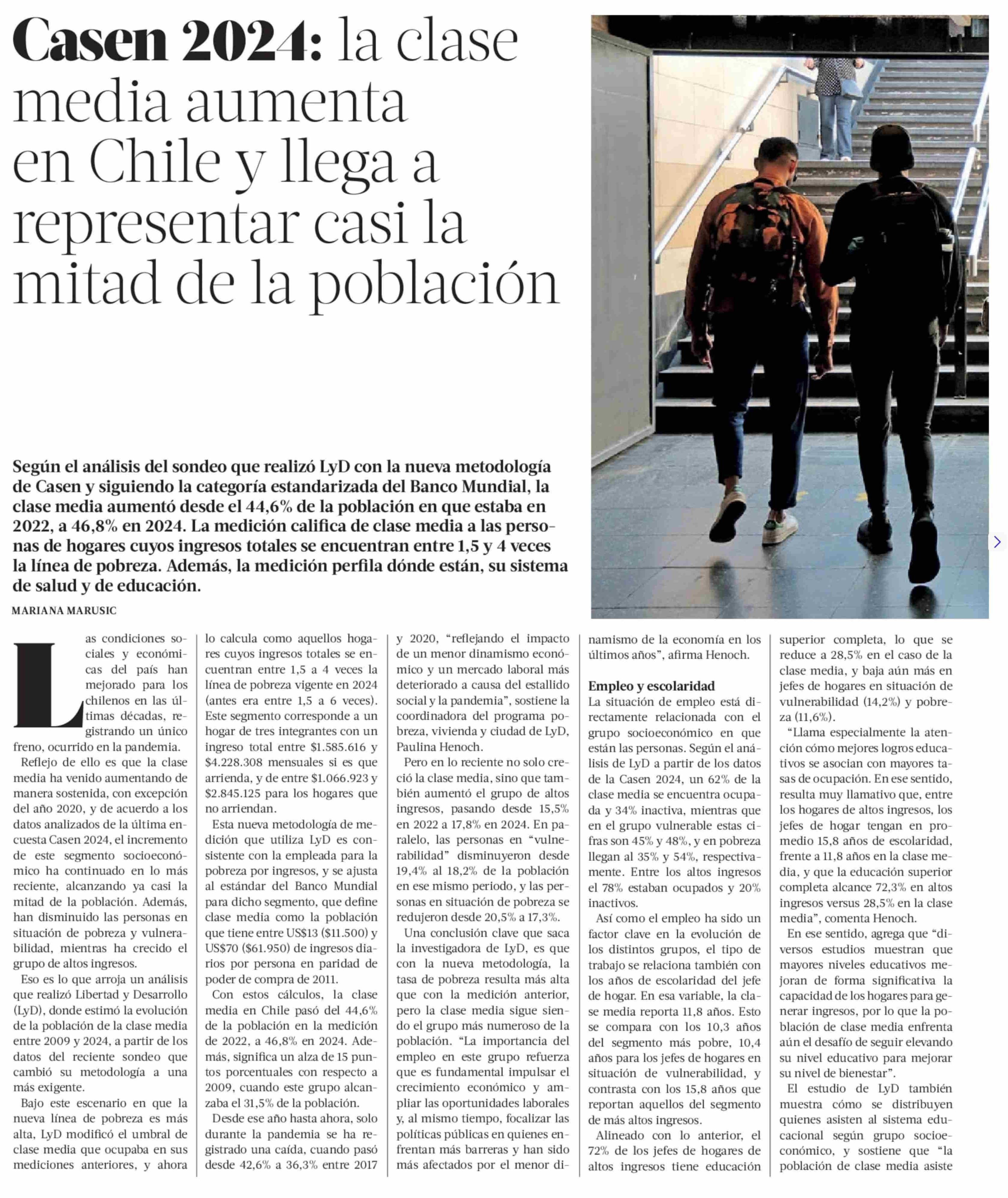 Título: Casen 2024: la clase media aumenta en Chile y llega a representar casi la mitad de la población