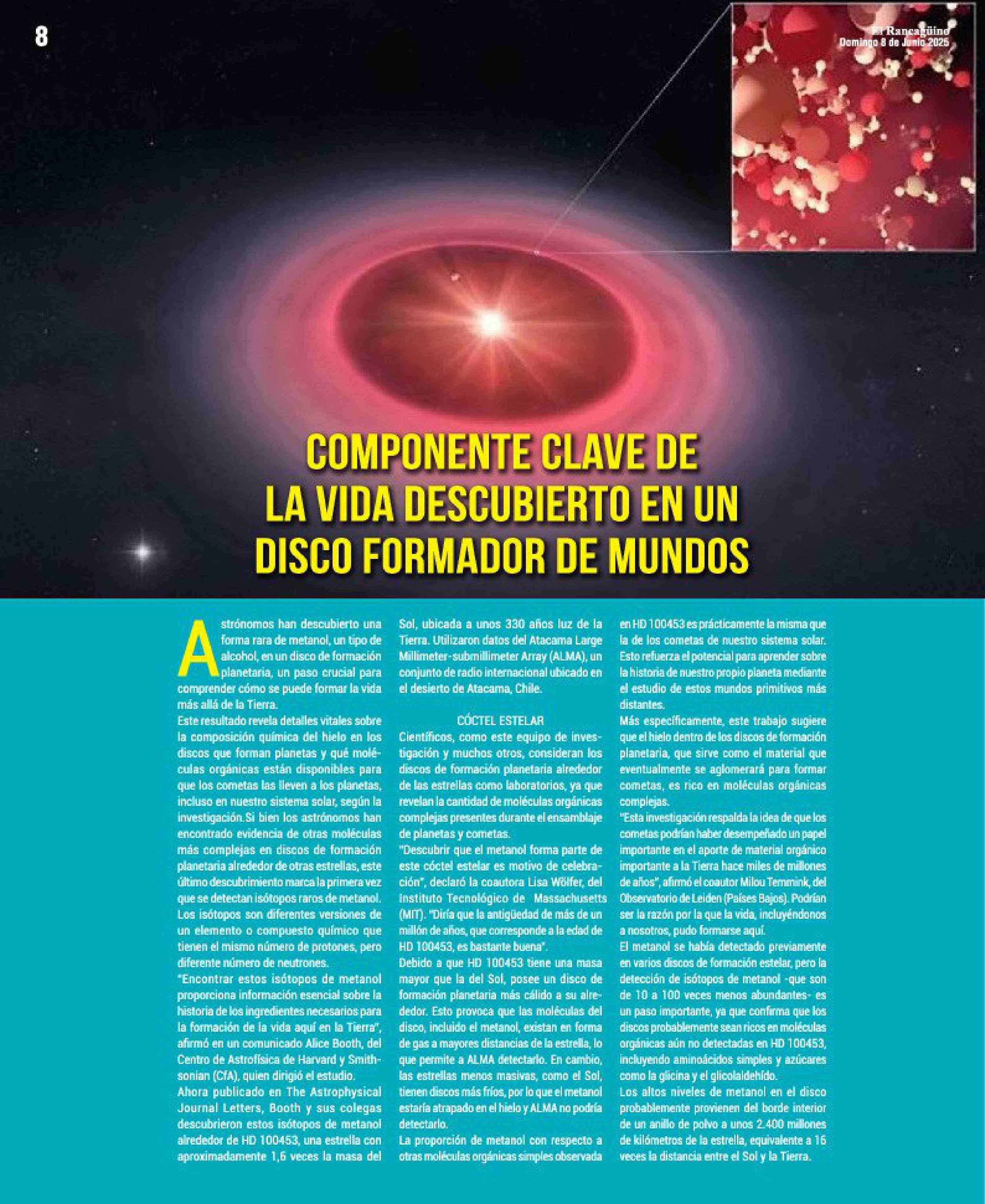 COMPONENTE CLAVE DE LA VIDA DESCUBIERTO EN UN DISCO FORMADOR DE MUNDOS 08-06-2025 El Rancagüino |