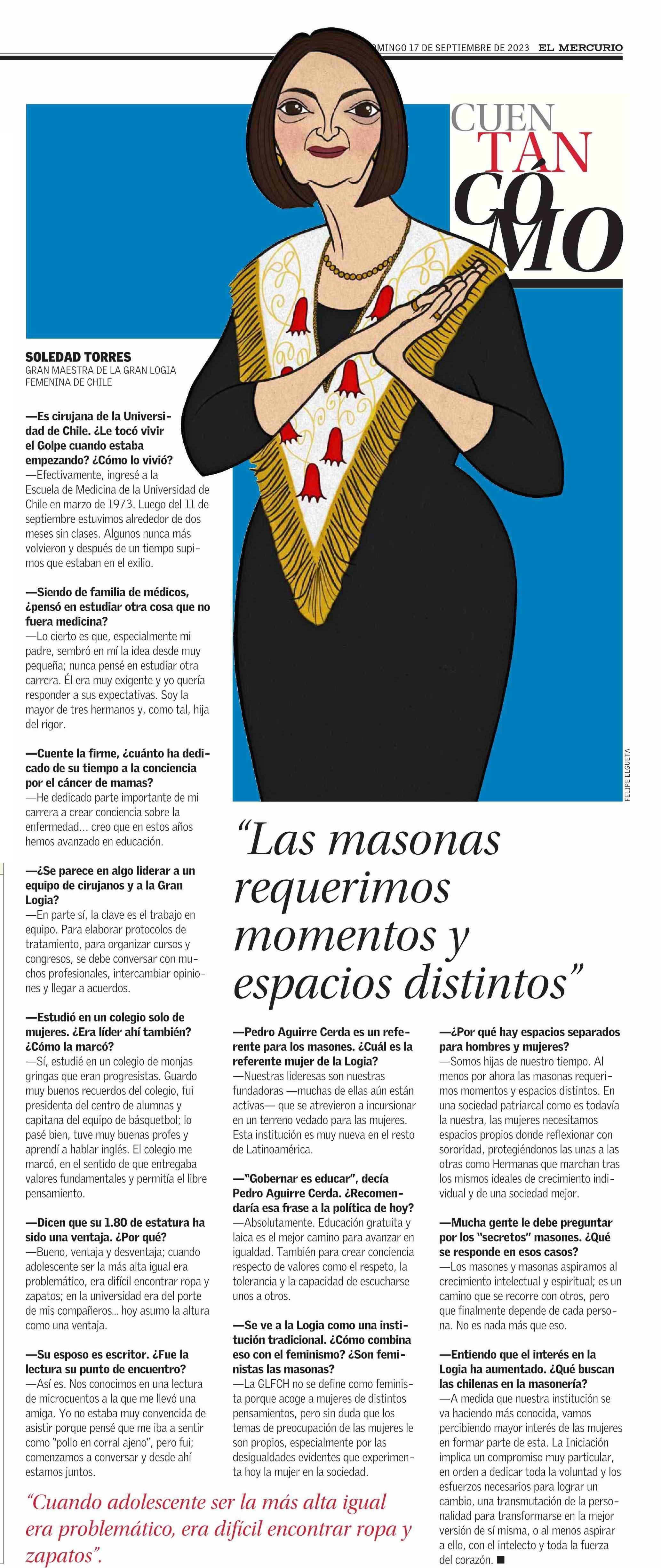 "Las masonas requerimos momentos y espacios distintos" 17-09-2023 El Mercurio |