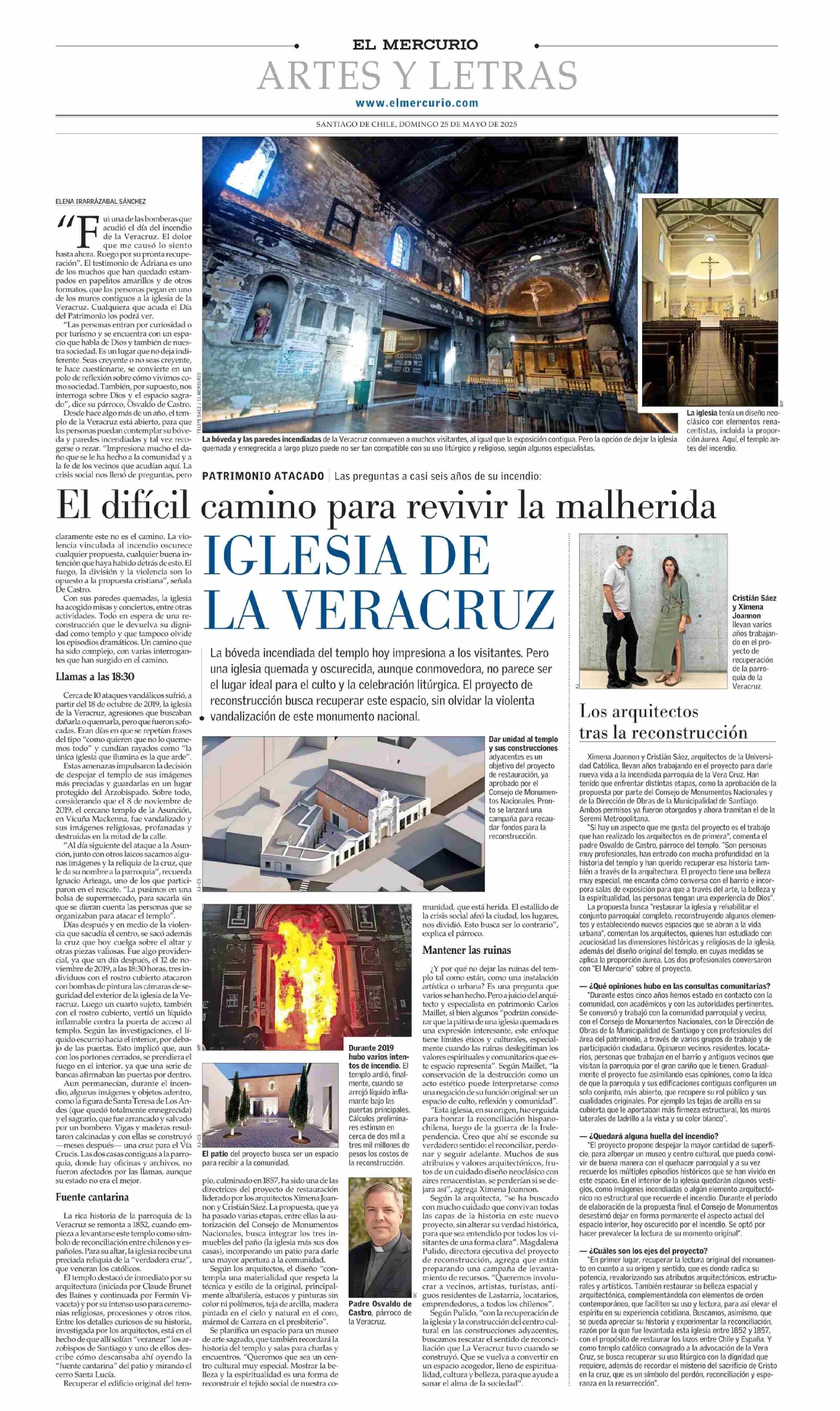 El difícil camino para revivir la malherida Iglesia de la Veracruz 25-05-2025 El Mercurio |