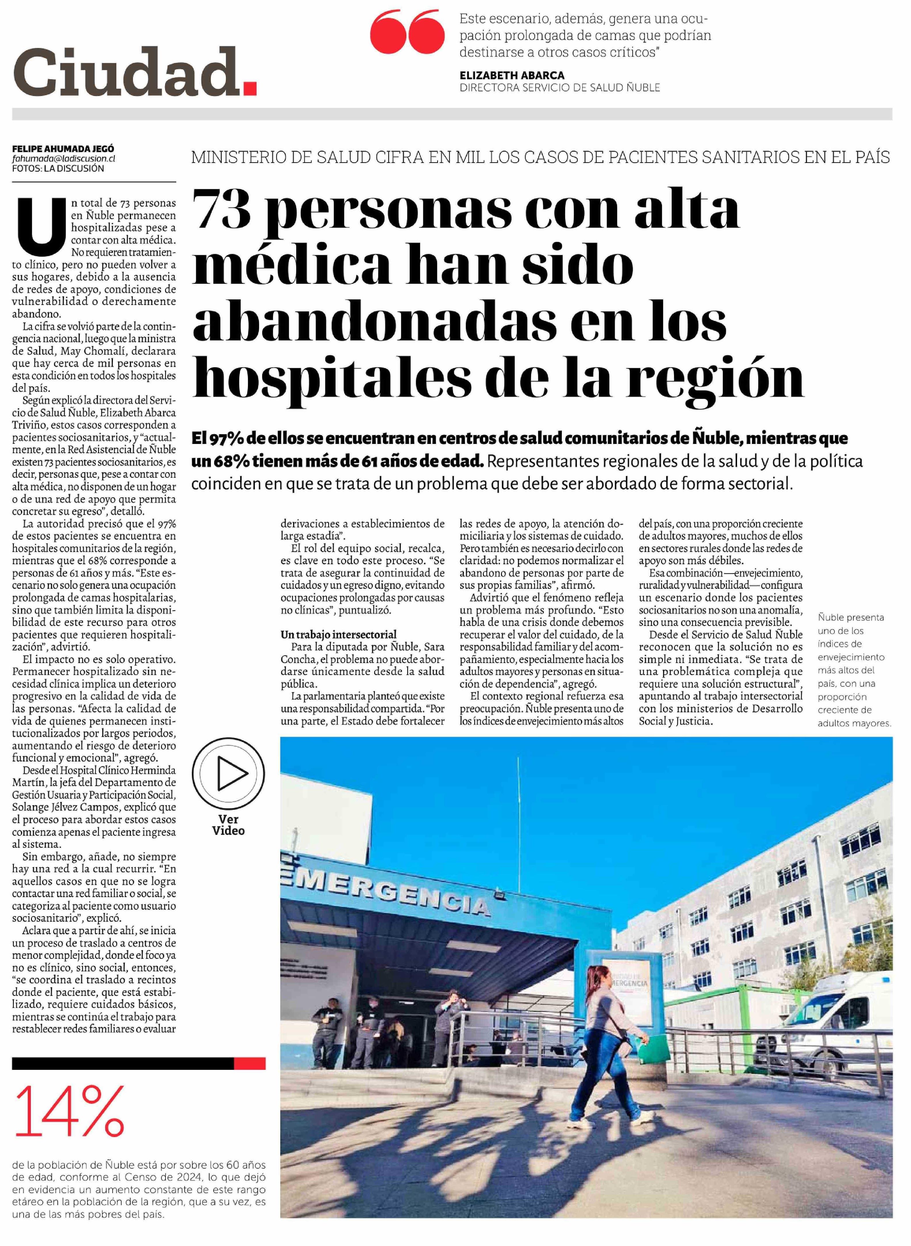 73 Personas con alta médica han sido abandonadas en los hospitales de la región 16-04-2026 La Discusión |