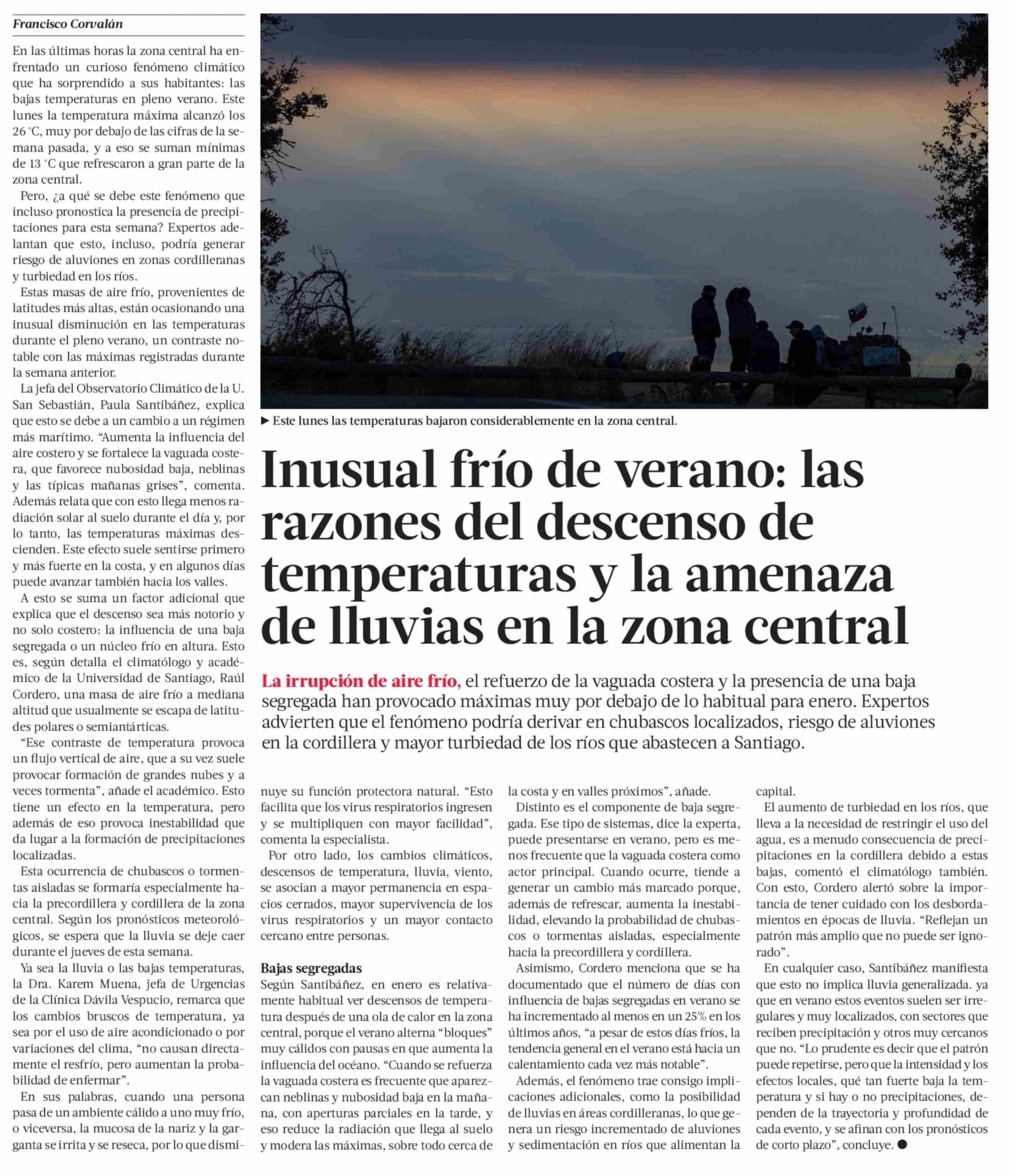 Inusual frío de verano: las razones del descenso de temperaturas y la amenaza de lluvias en la zona central 06-01-2026 La Tercera |