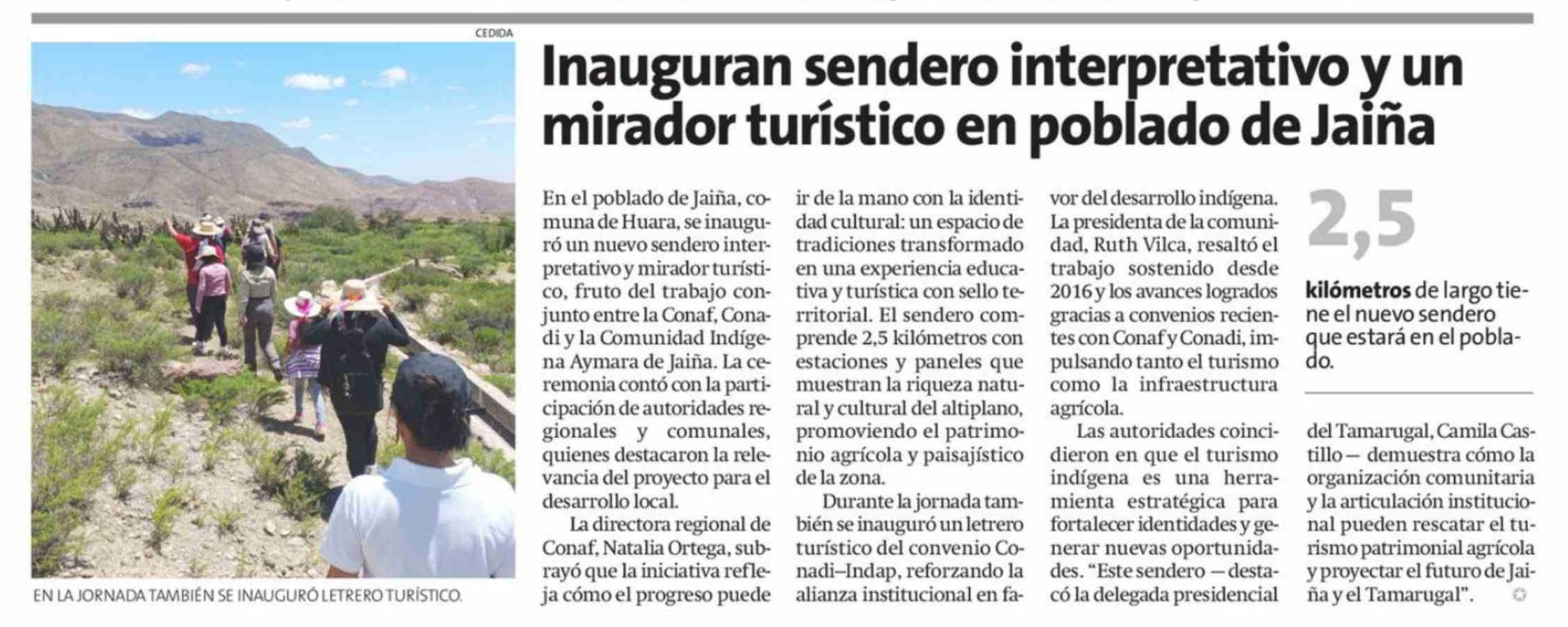 Título: Inauguran sendero interpretativo y un mirador turístico en poblado de Jaiña