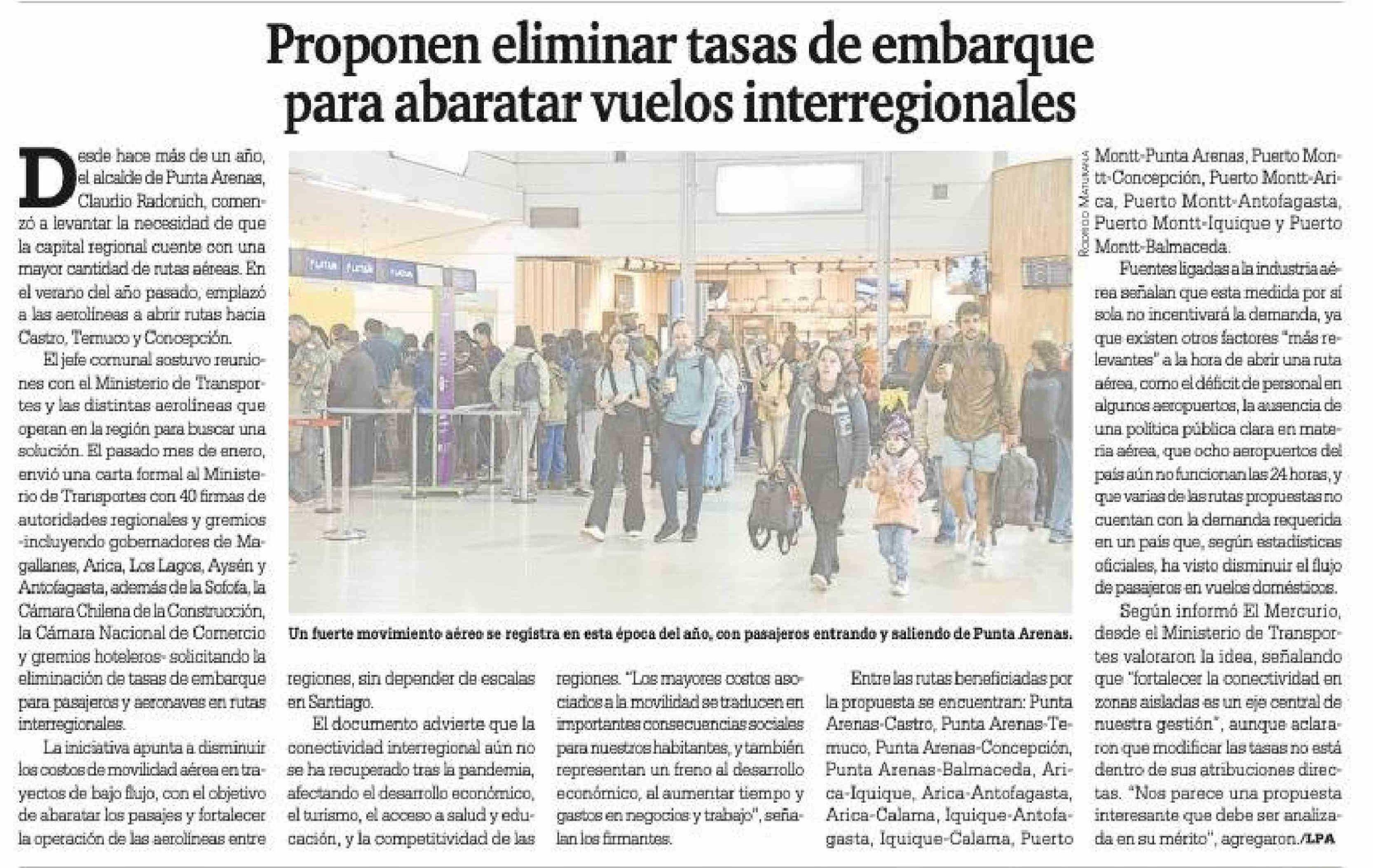 Título: Proponen eliminar tasas de embarque para abaratar vuelos interregionales