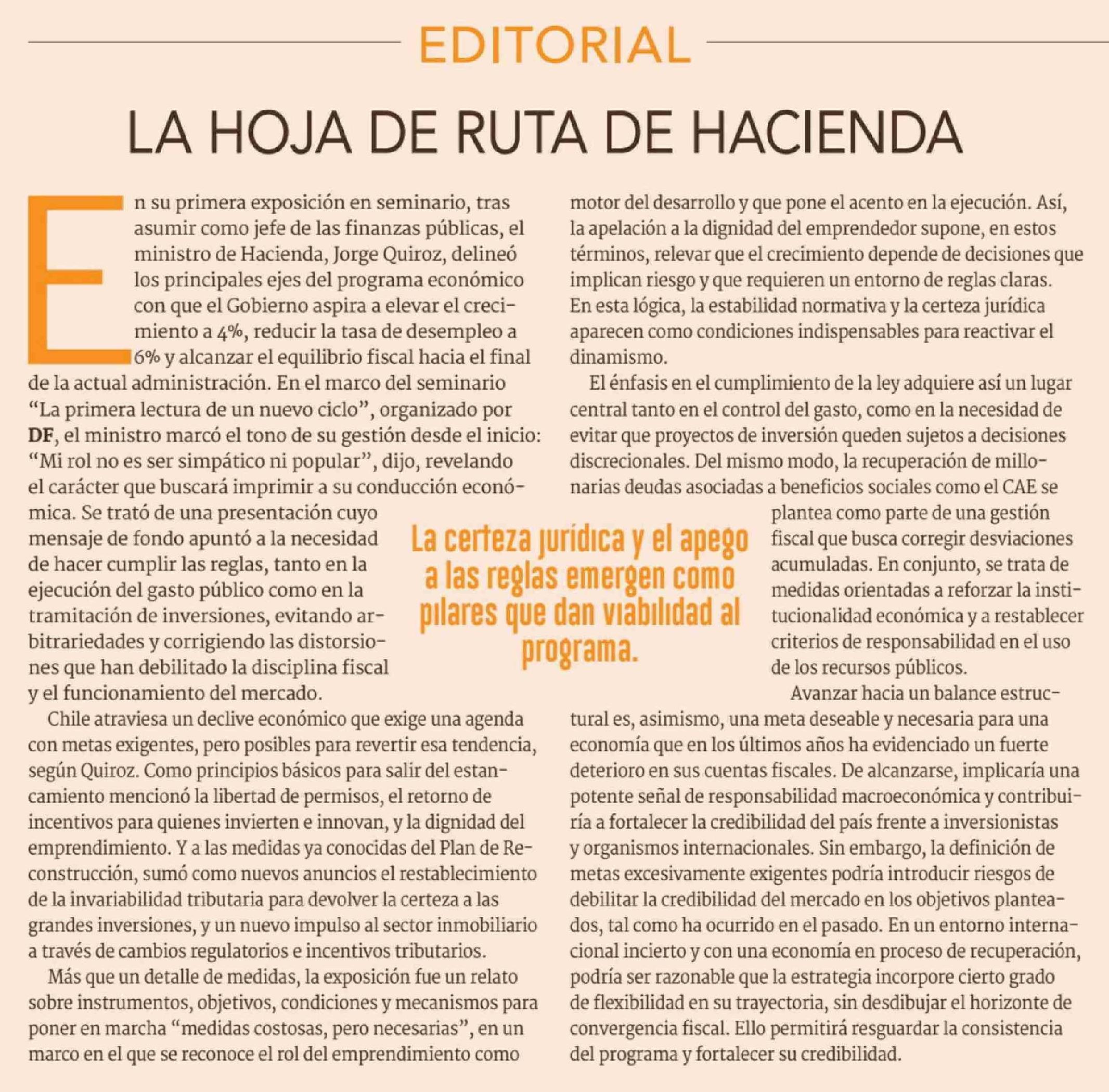 Editorial: LA HOJA DE RUTA DE HACIENDA 20-03-2026 Diario Financiero |