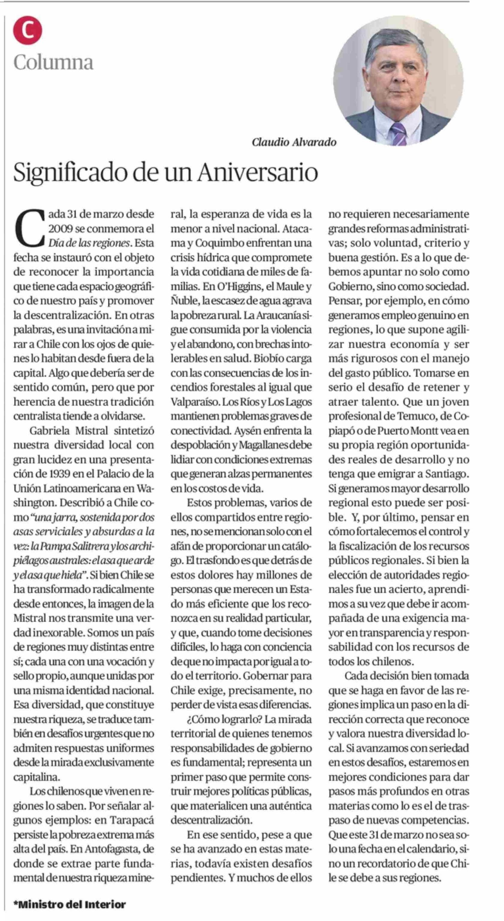 COLUMNAS DE OPINIÓN: Significado de un Aniversario 31-03-2026 El Mercurio de Antofagasta |