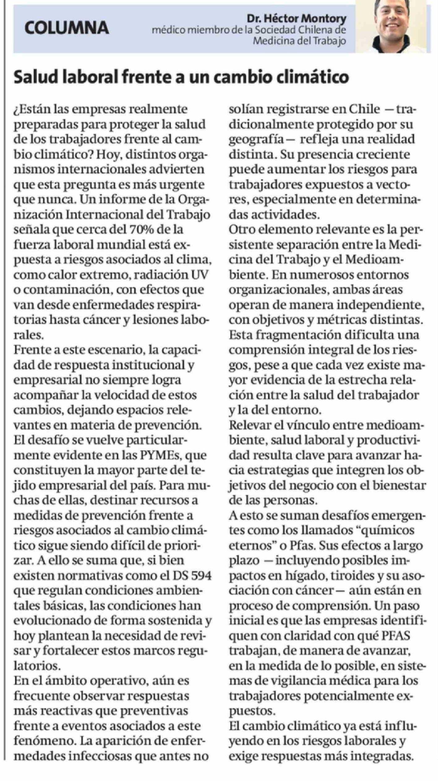 Columnas de Opinión: Salud laboral frente a un cambio climático 23-04-2026 La Estrella de Concepción |