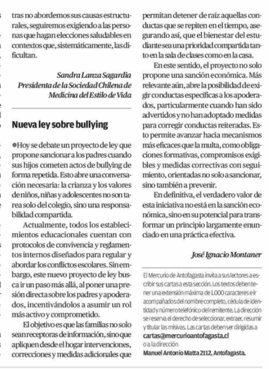 Cartas: Nueva ley sobre bullying 15-04-2026 El Mercurio de Antofagasta |