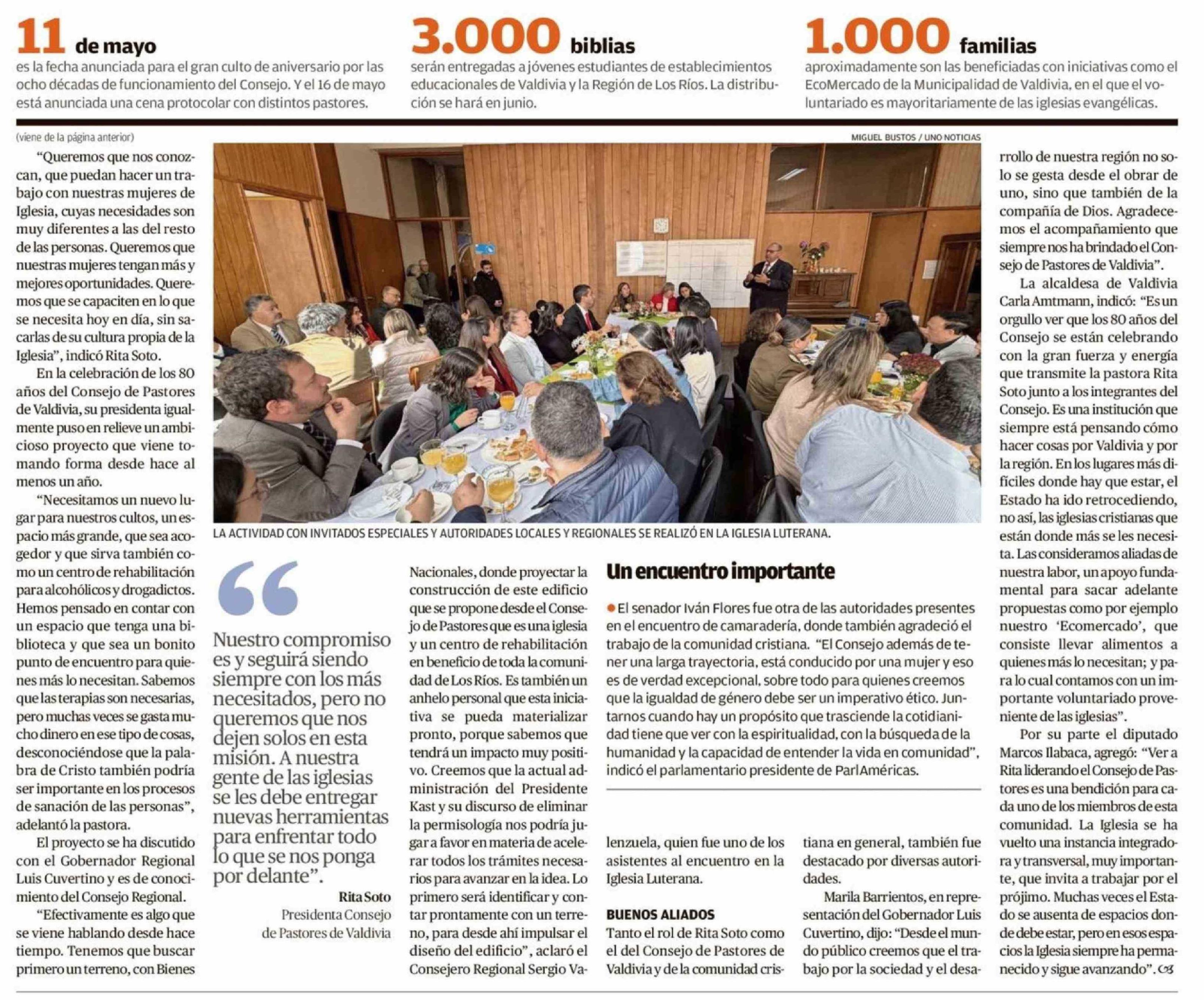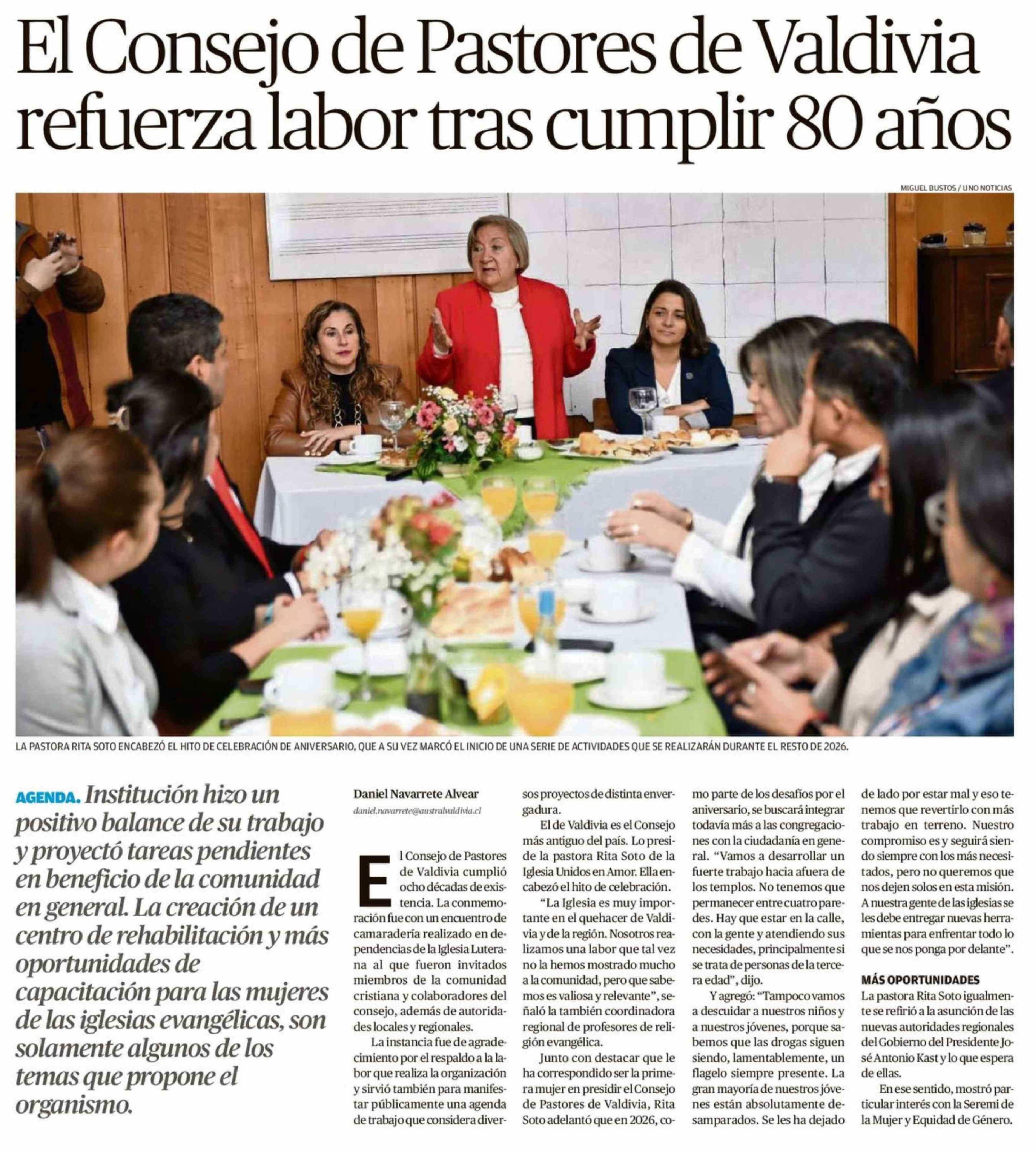El Consejo de Pastores de Valdivia refuerza labor tras cumplir 80 años 27-04-2026 Diario Austral Región de Los Ríos |