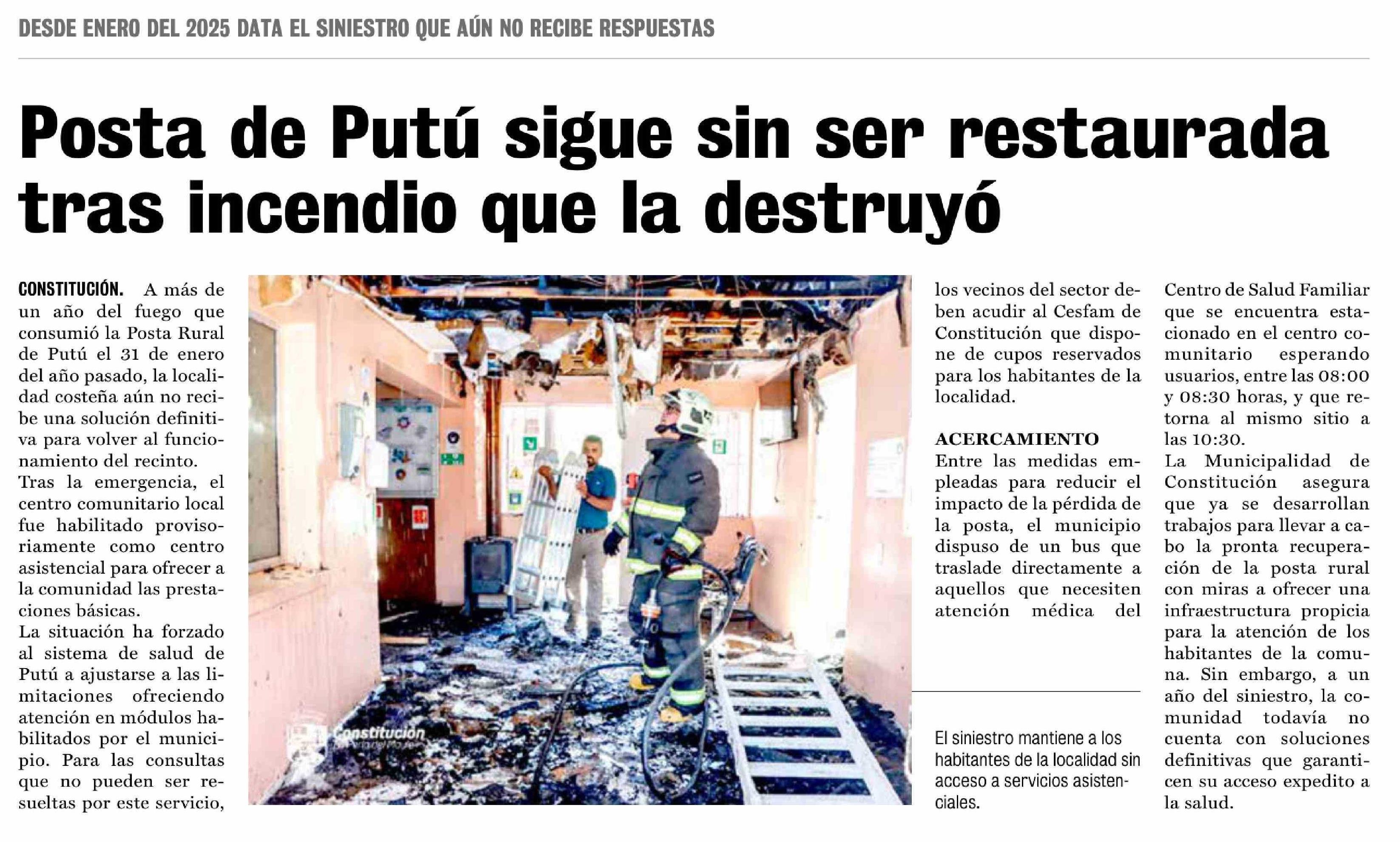 Título: Posta de Putú sigue sin ser restaurada tras incendio que la destruyó
