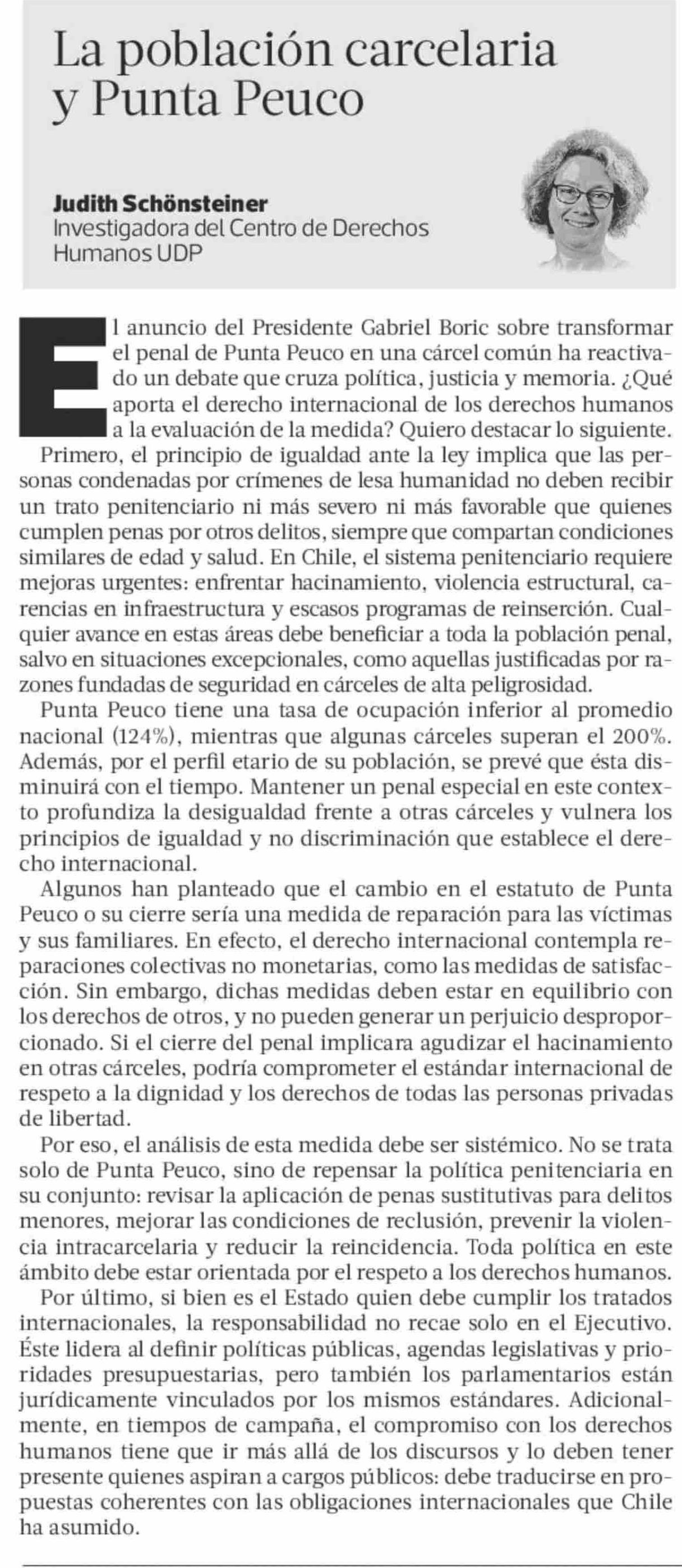 | Título: | Columnas de Opinión: La población carcelaria y Punta Peuco |