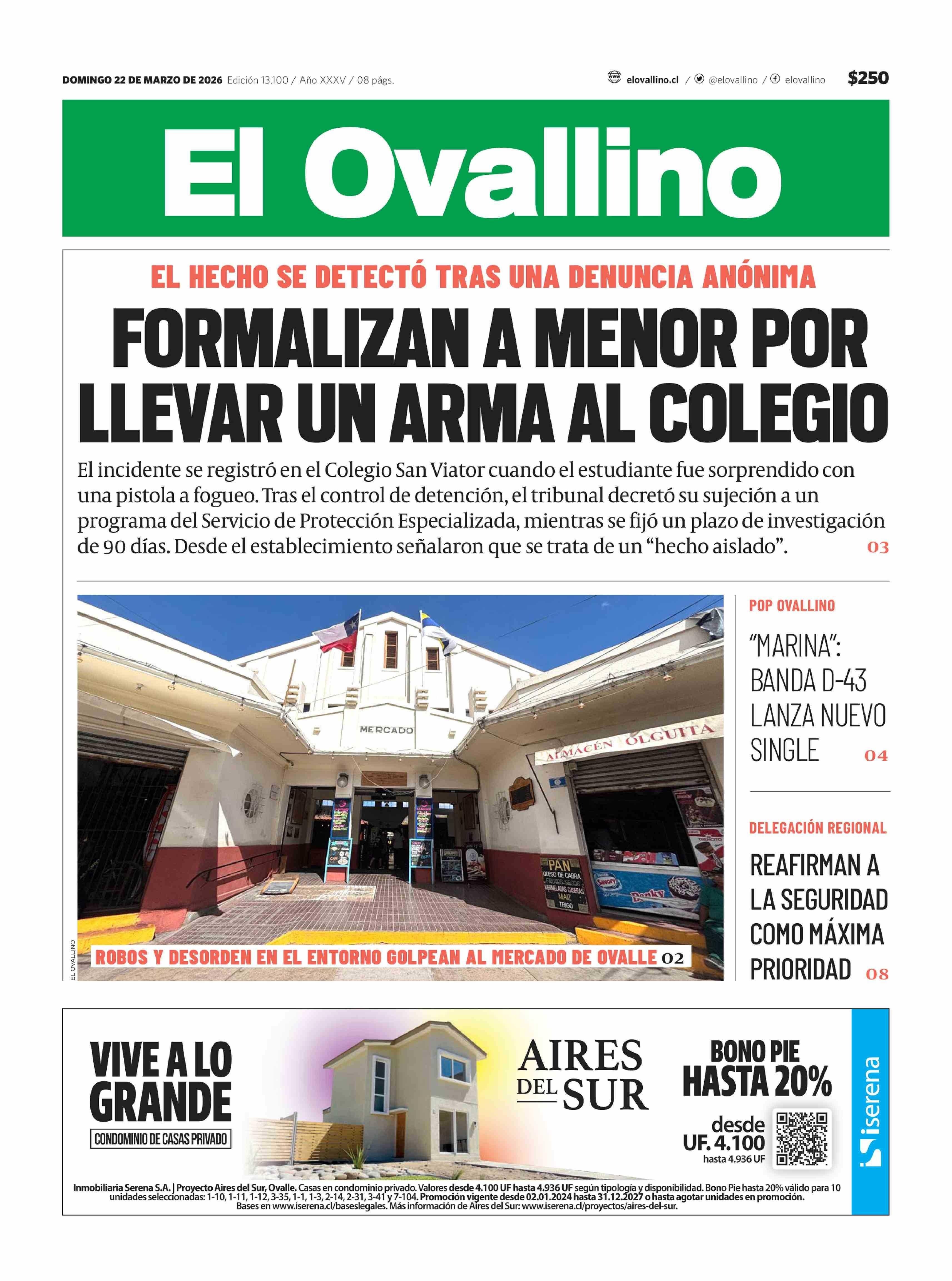 PORTADA EL OVALLINO CHILE 22-03-2026 El Ovallino |