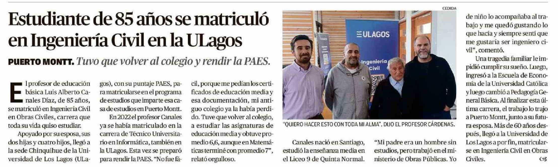 Título: Estudiante de 85 años se matriculó en Ingeniería Civil en la ULagos