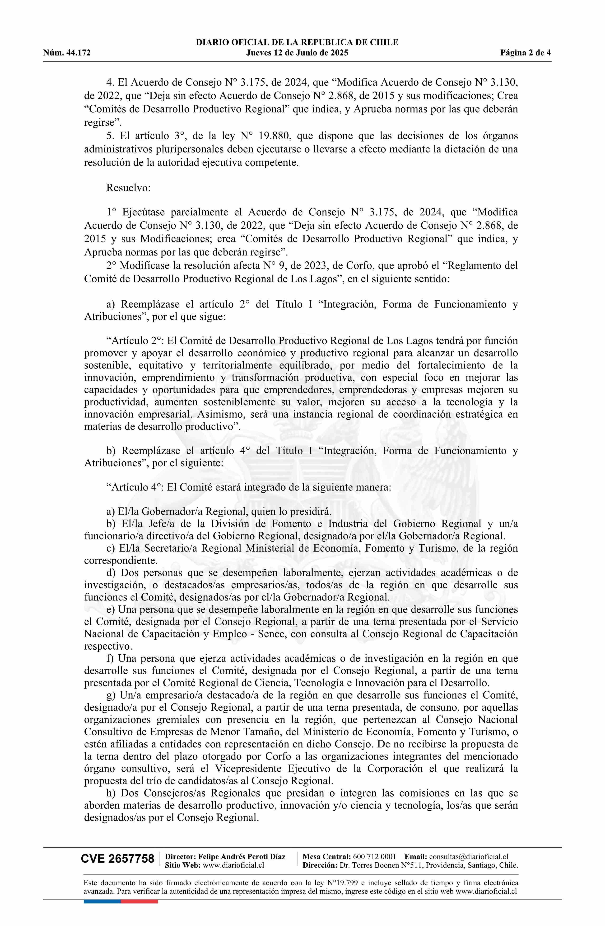 | Título: | Resolución exenta número 554, de 2025.- Ejecuta parcialmente Acuerdo de Consejo Nº 3.175, de 2024, que modifica Acuerdo de Consejo Nº 3.130, de 2022, que deja sin efecto Acuerdo de Consejo Nº 2.868, de 2015 y sus modificaciones; crea Comités de Desarrollo Productivo Regional que indica, y aprueba no |