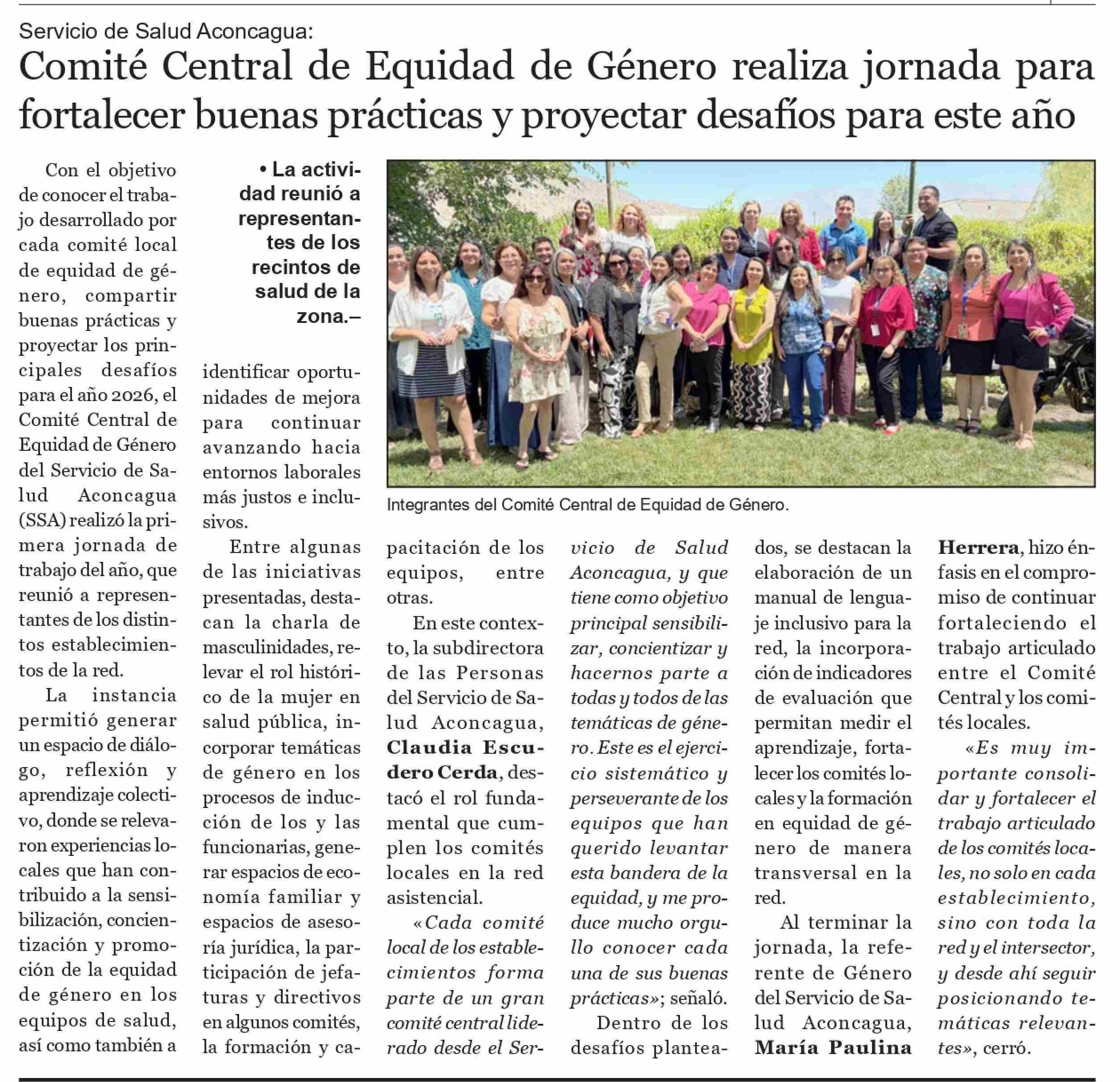 | Título: | Comité Central de Equidad de Género realiza jornada para fortalecer buenas prácticas y proyectar desafíos para este año |