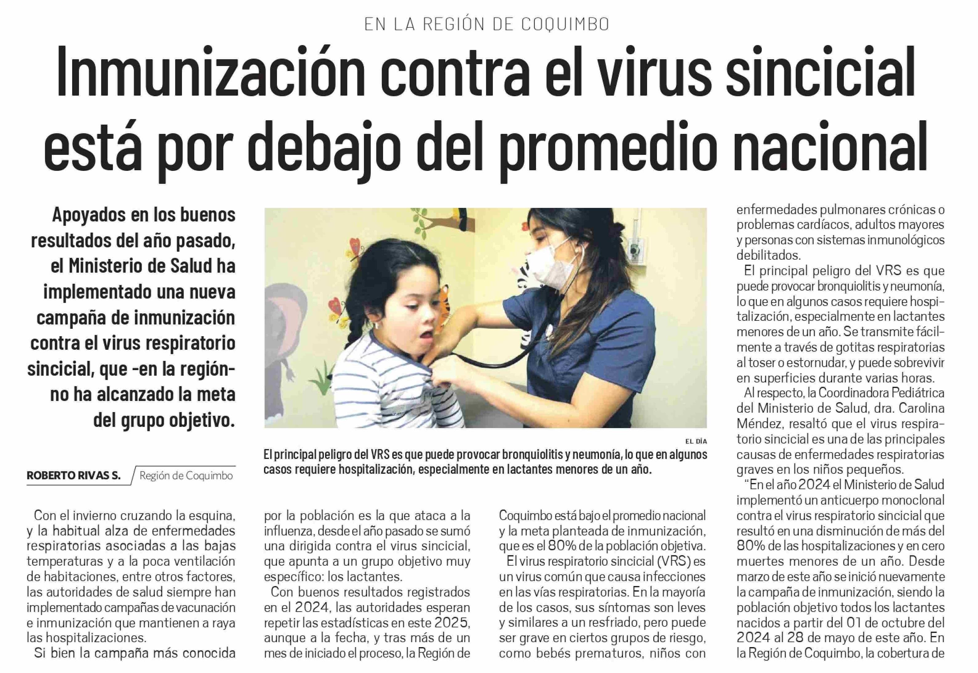 | Título: | Inmunización contra el virus sincicial está por debajo del promedio nacional |
