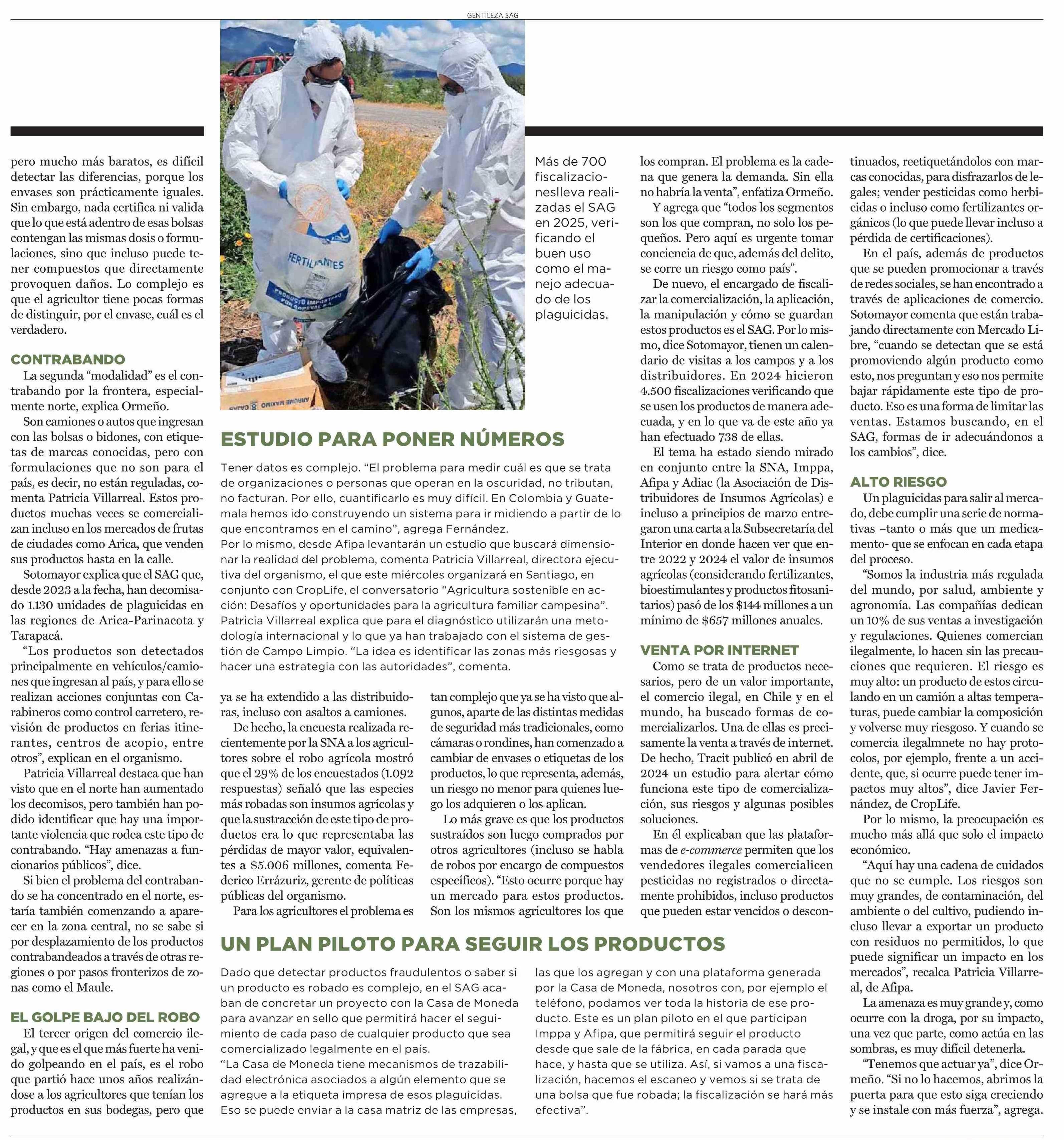 Comercio ilegal de plaguicidas: una amenaza que crece 28-04-2025 El Mercurio |