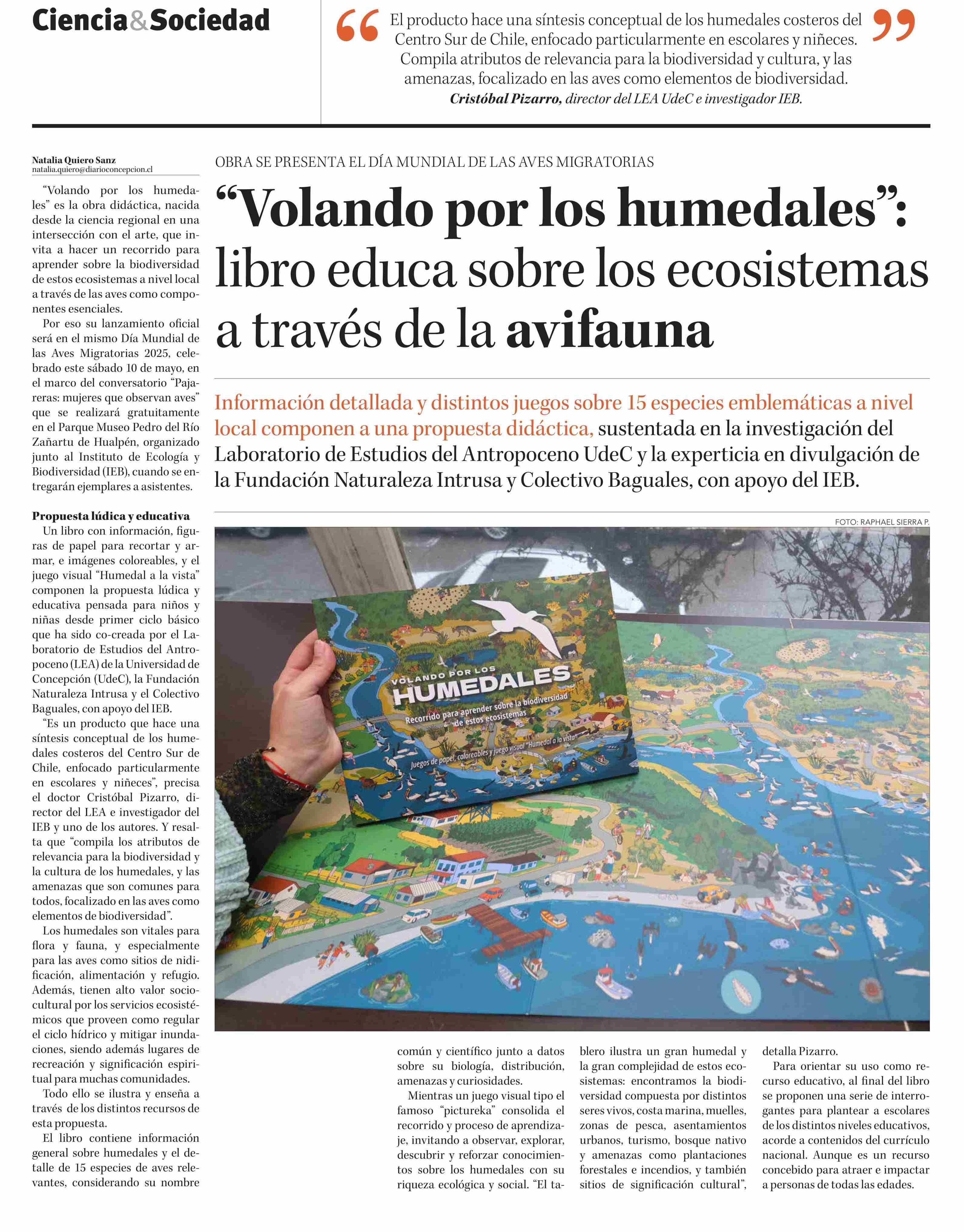 "Volando por los humedales": libro educa sobre los ecosistemas a través de la avifauna 08-05-2025 Diario Concepción |